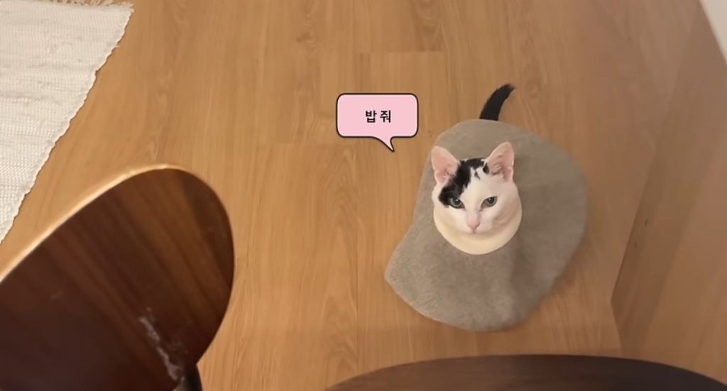 모네는 밥찷이라고 직접 내려와 항의(?)하는 집고양이로