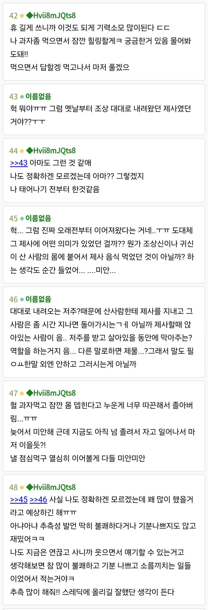 심야괴담회 보고 찾아왔ㄷ ㅏ...ㄷㄷ 근데 방송에선 뭔 아들못낳은 며느리 얘기는 왜 껴놓은겨;;