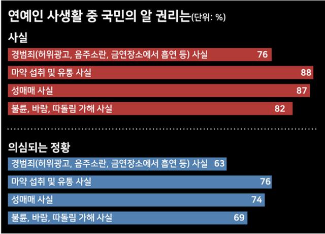 [여시뉴스데스크]"연예인은 공인" 71%···"범죄나 비윤리적 행동, 알권리 있다" 80% 이상 [여론 속의 여론]