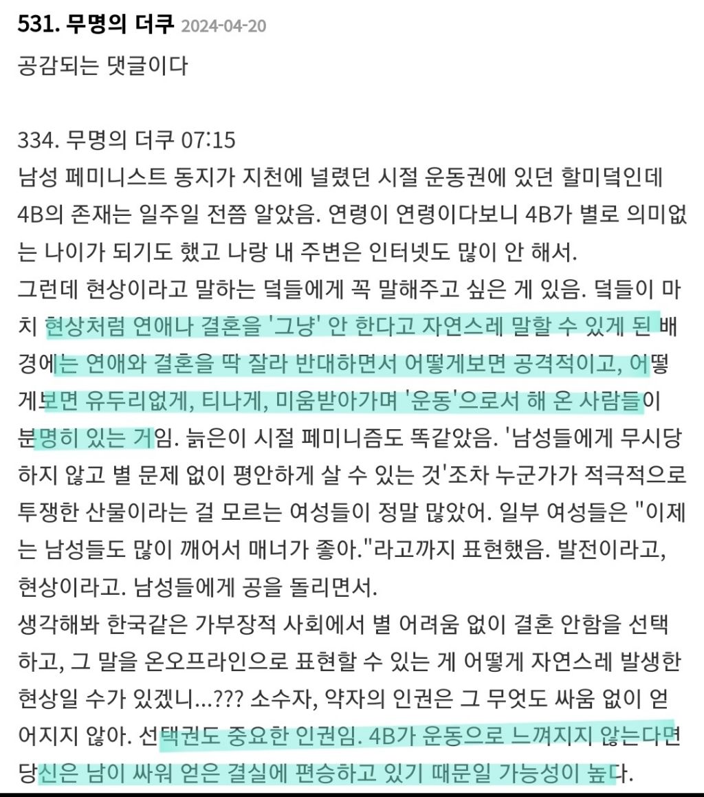 한국여성들 다 4b중인데 왜 쉬쉬해애해 우리 다시 4b라는 단어를 수면위로 올리자!! 글자수도 짧고 좋다 허허