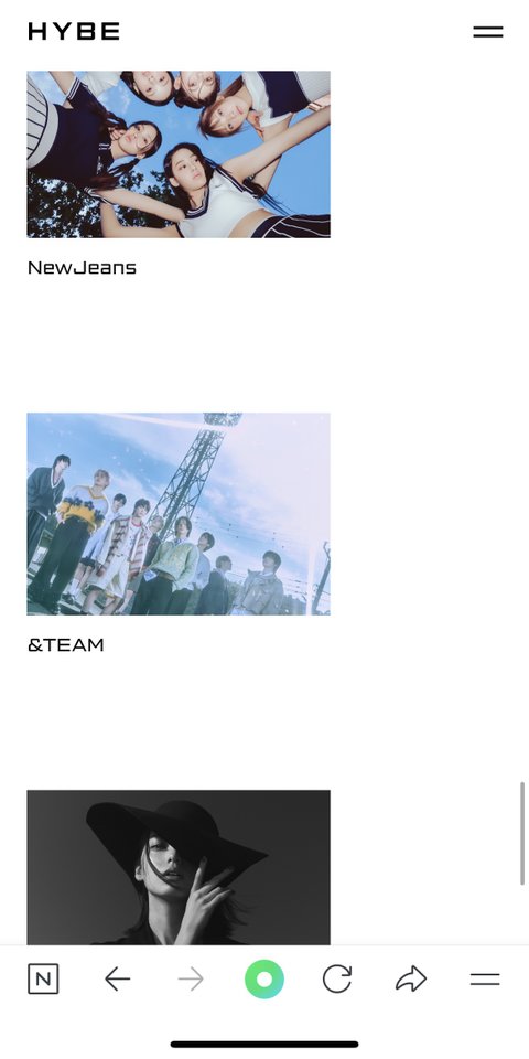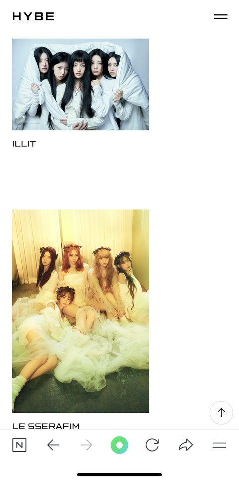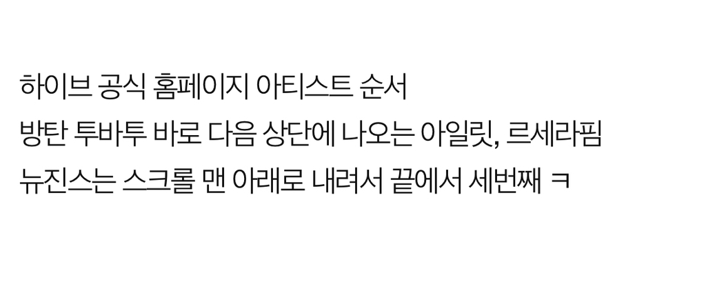 하이브 공홈 아티스트 순서