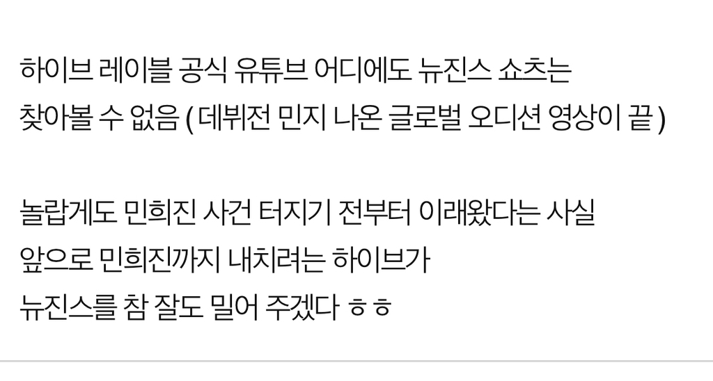 하이브 쇼츠에 뉴진스 쇼츠 없음