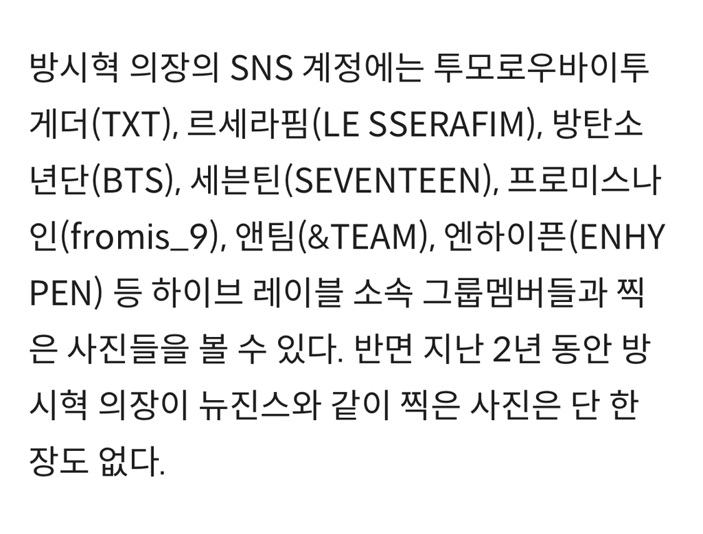 방시혁 sns에 뉴진스랑 같이 찍은 사진만 없음