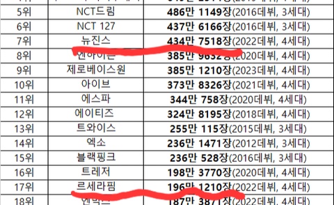 뉴진스 웬만한 남돌만큼 앨범 파는데