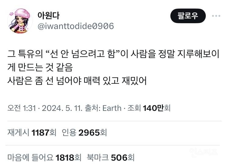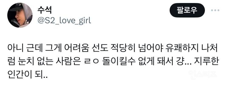 작성자의원면직한여시 작성시간 24.05.13 각자 자기랑 맞는 사람이랑 잘 지내면 될 일