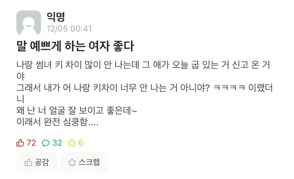 [기타]말 예쁘게 하는 썸녀 작성자남자를왜못잃지|작성시간24.05.16|조회수16,003 목록 댓글 46 글자크기 작게가 글자크기 크게가 출처: 여성시대 남자를왜못잃지지 말 뽄새는..ㅎ;인스타,남초에는 ㅈㄴ 돌아다니는데 여초에는 1도 없는 짤이라 가져옴 ㅋㅋㅋㅋㅋ문제시 키작남 칼삭 다음검색 현재 게시글 추가 기능 열기 북마크 공유하기 신고 센터로 신고 댓글 댓글 46 댓글쓰기 답글쓰기 댓글 리스트 작성자딩딩딩댕댕댕 | 작성시간 24.05.16 썸녀 맞아? 작성자부릉망곰 | 작성시간 24.05.16 본인은 저따구로 말해놓고 예쁘게 말하는 여자가 좋다? 진짜 주제를 몰라.. 작성자냥냥사랑해 | 작성시간 24.05.16 안크고머함 작성자rgrgrg | 작성시간 24.05.16 숏전신 작성자Wittgenstein | 작성시간 24.05.16 ㅋㅋㅋㅋㅋㅋㅋㅋ 댓글 전체보기