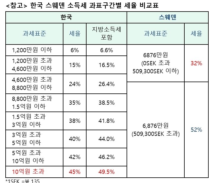 평균 부가가치세는 20~25%, 소득세는 중산층 기준 40-50%
