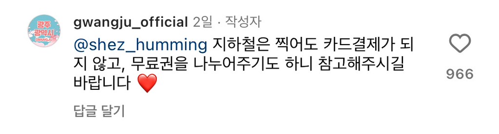 ✅이용 가능 대중교통 : 광주 시내버스 및 지하철