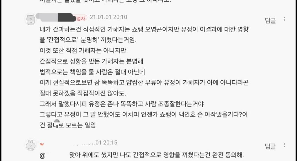 백인호 유정 서로 쌍방으로 잘못한건 분명 맞음