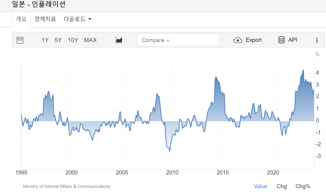 이러한 정책들 때문일까 일본은 기존에 물가상승률 2%가 목표였지만