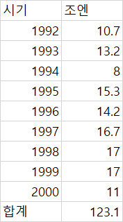 알다시피 딱 그 때와 맞물려서 아시아 금융위기로 일본 경제도 피를 본 거지