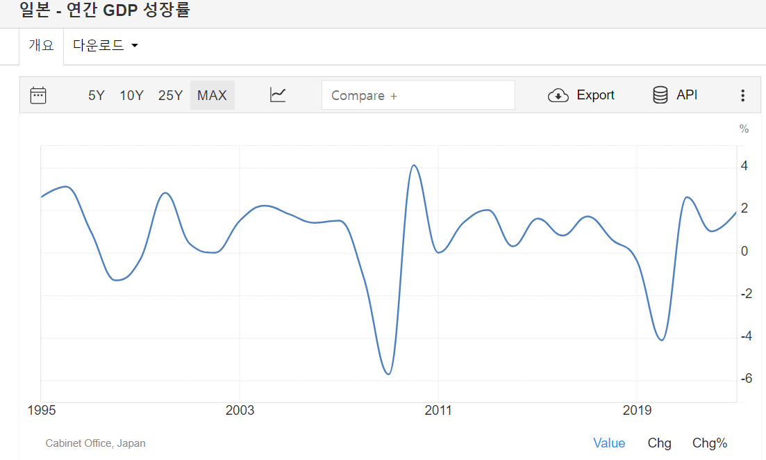 근데도 일본은 재정 정책이랑 금리 정책 두 개를 동시에 돌렸는데도 고작 2% 성장이라는 게 쎄했는데,