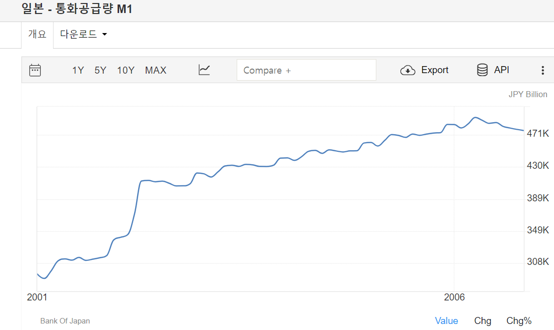 이로써 일본의 통화량은 2001년에 308조엔에서 2006년 470조엔으로 늘어나게 된다