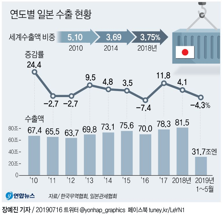 실제로 한일 수출액을 보면 15년 전만 하더라도 일본이 한국보다 수출액이 두 배 정도 많았는데