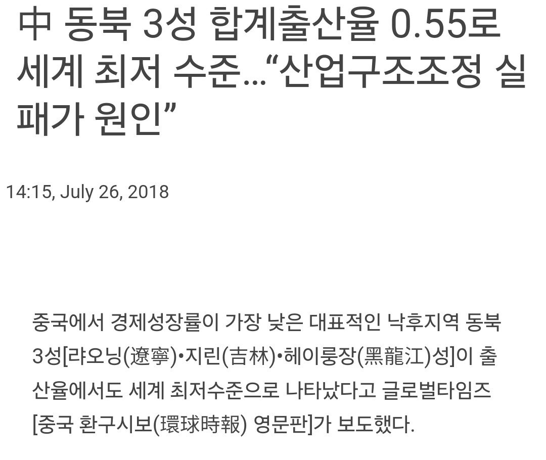 작년 중국 출산율이 1.0까지 내려왔고