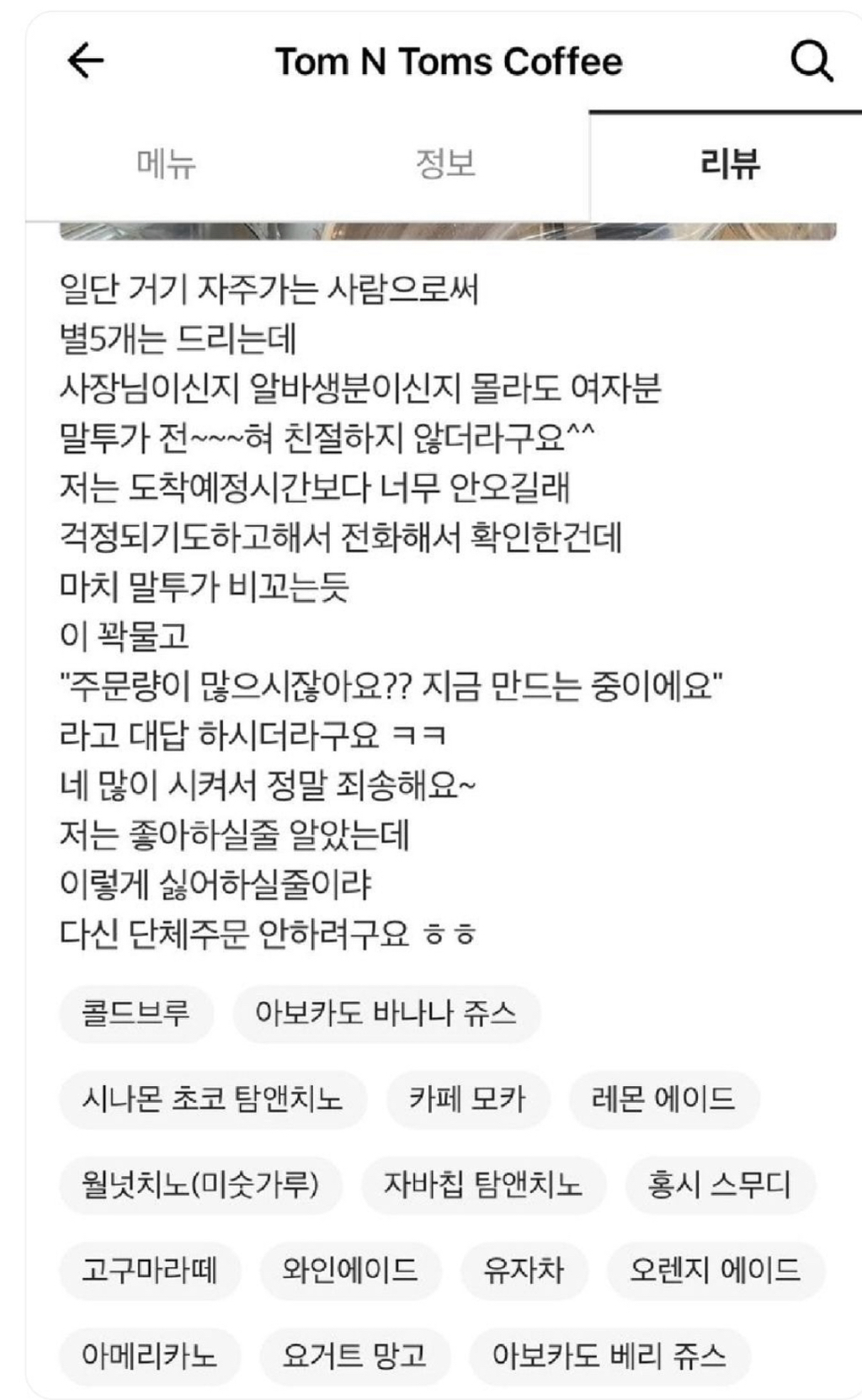 [흥미돋]카페 직원들 즐거운 비명 지르는 짤 작성자나프탈렌향|작성시간24.05.21|조회수10,421 목록 댓글 58 글자크기 작게가 글자크기 크게가 출처: 여성시대 나프탈렌향 다음검색 현재 게시글 추가 기능 열기 북마크 공유하기 신고 센터로 신고 댓글 댓글 58 댓글쓰기 답글쓰기 댓글 리스트 작성자톰아톰 | 작성시간 24.05.21 근데 나는 저런 주문지들어오면 희열쩔음 탁탁탁탁 팀원하고 스테이션마다 서서 착착착할때 희열,, ㅎ잼나,, ㅎ 작성자말하는햄스터 | 작성시간 24.05.21 두번째메뉴는 쉬움 첫번째는 재밌겠네 작성자컨텍스트 | 작성시간 24.05.21 어휴.. ㅠㅠㅠㅠㅠ 삭제된 댓글입니다. 답댓글 작성자햄주먹밥 | 작성시간 24.05.21 연유녹이기 개극혐이라 개싫음 내가 제일 싫어하는 메뉴임 댓글 전체보기
