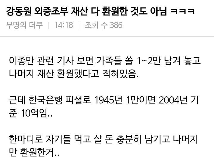 친일파 재산으로 호의호식한 것도 아니라서 뭐.. -