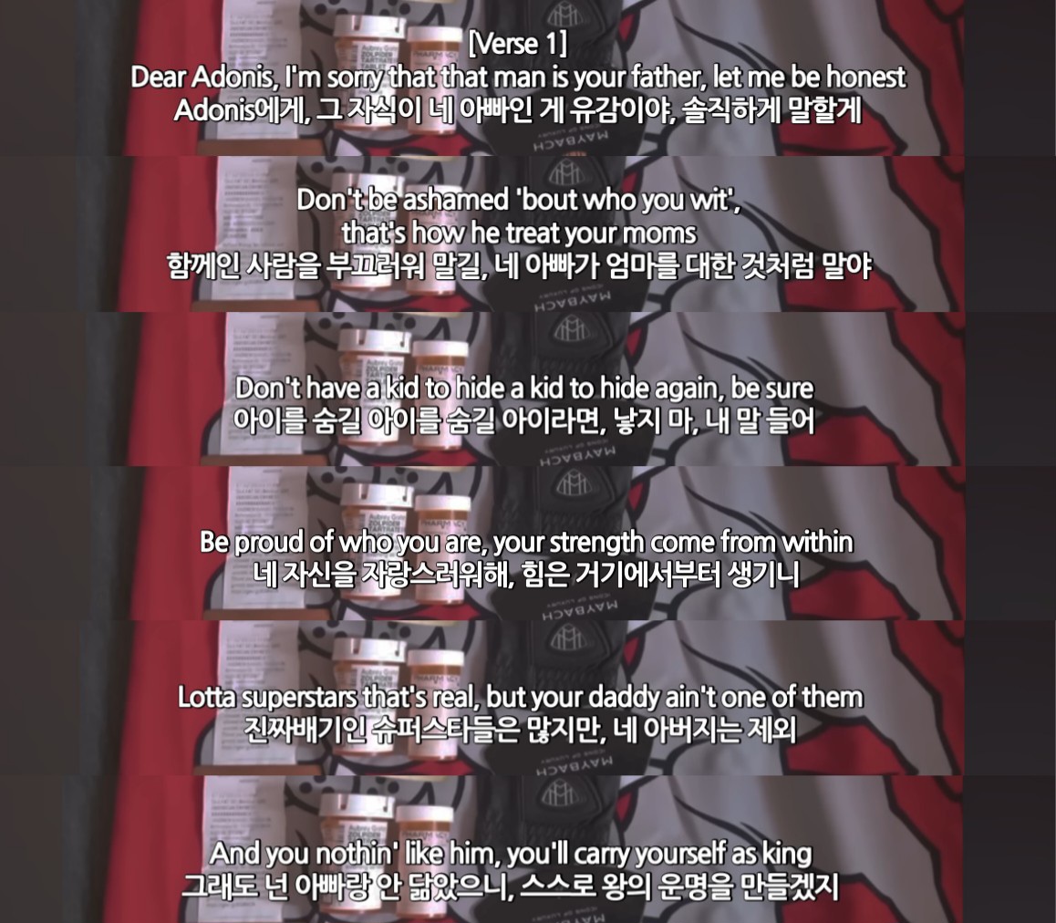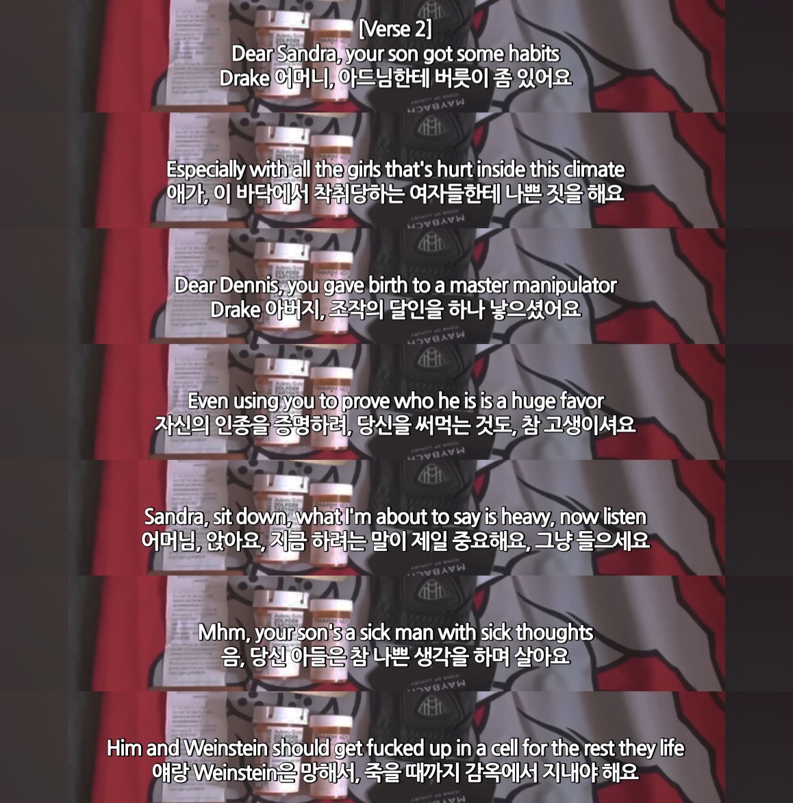 드레이크 가족들에게 보내는 편지 형식으로 랩이 진행됨