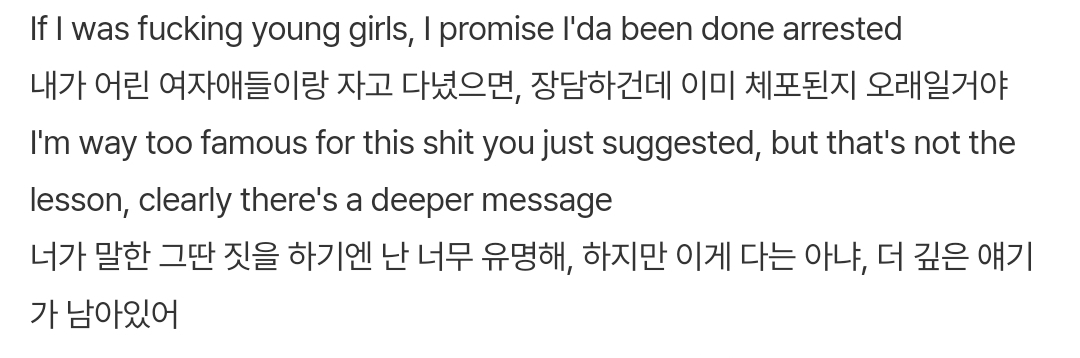 켄드릭 곡 얼른 발표해라,근데 너 수정할 시간 필요할듯? 의 내용인데