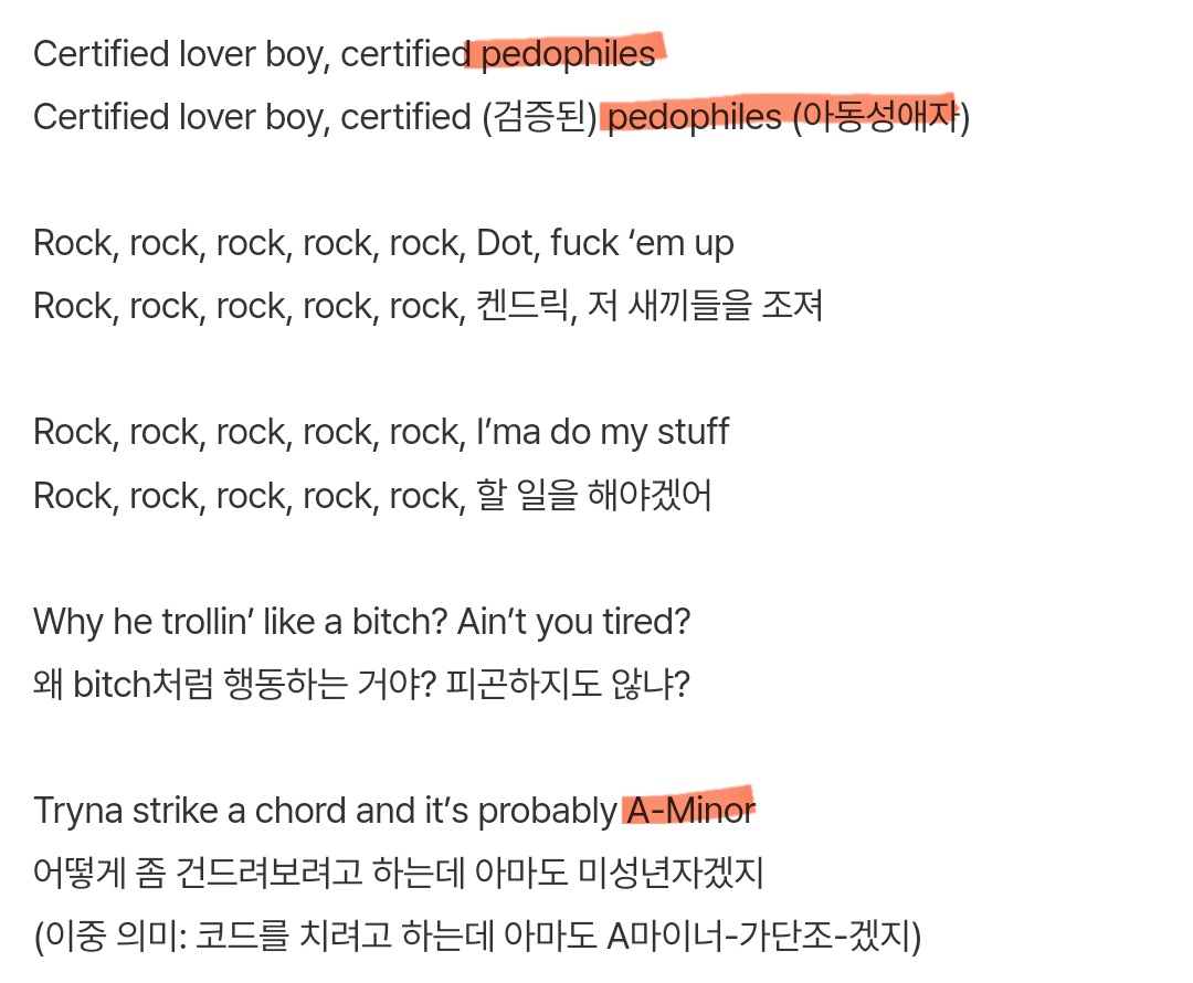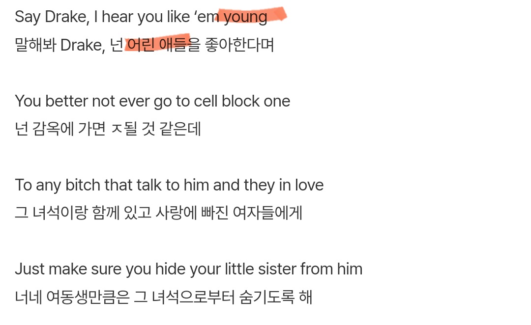 즉, 드래이크 = 소아성애자, 아동 성범죄자 라는 뜻