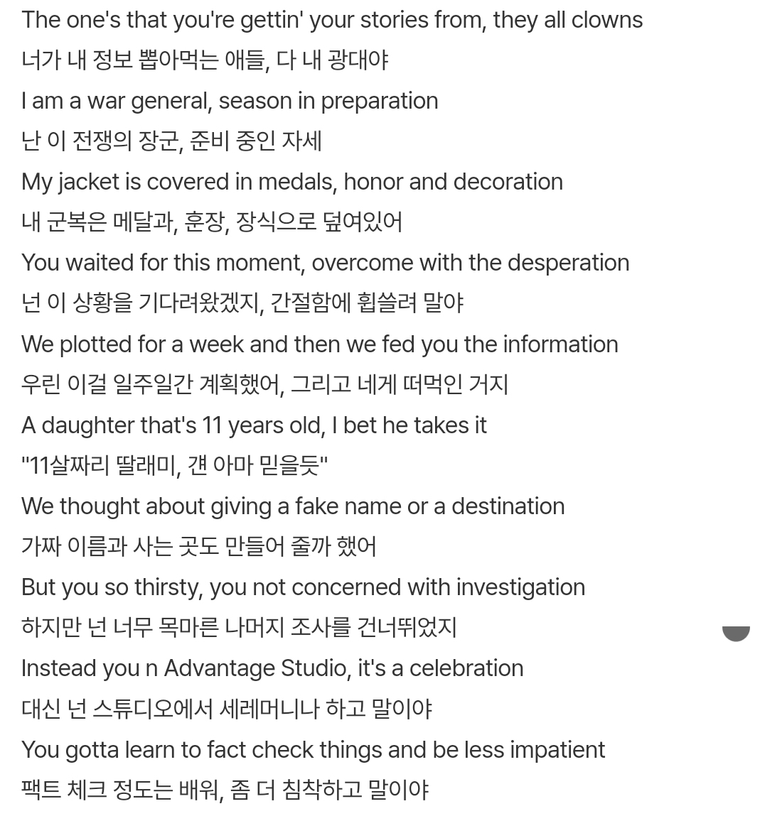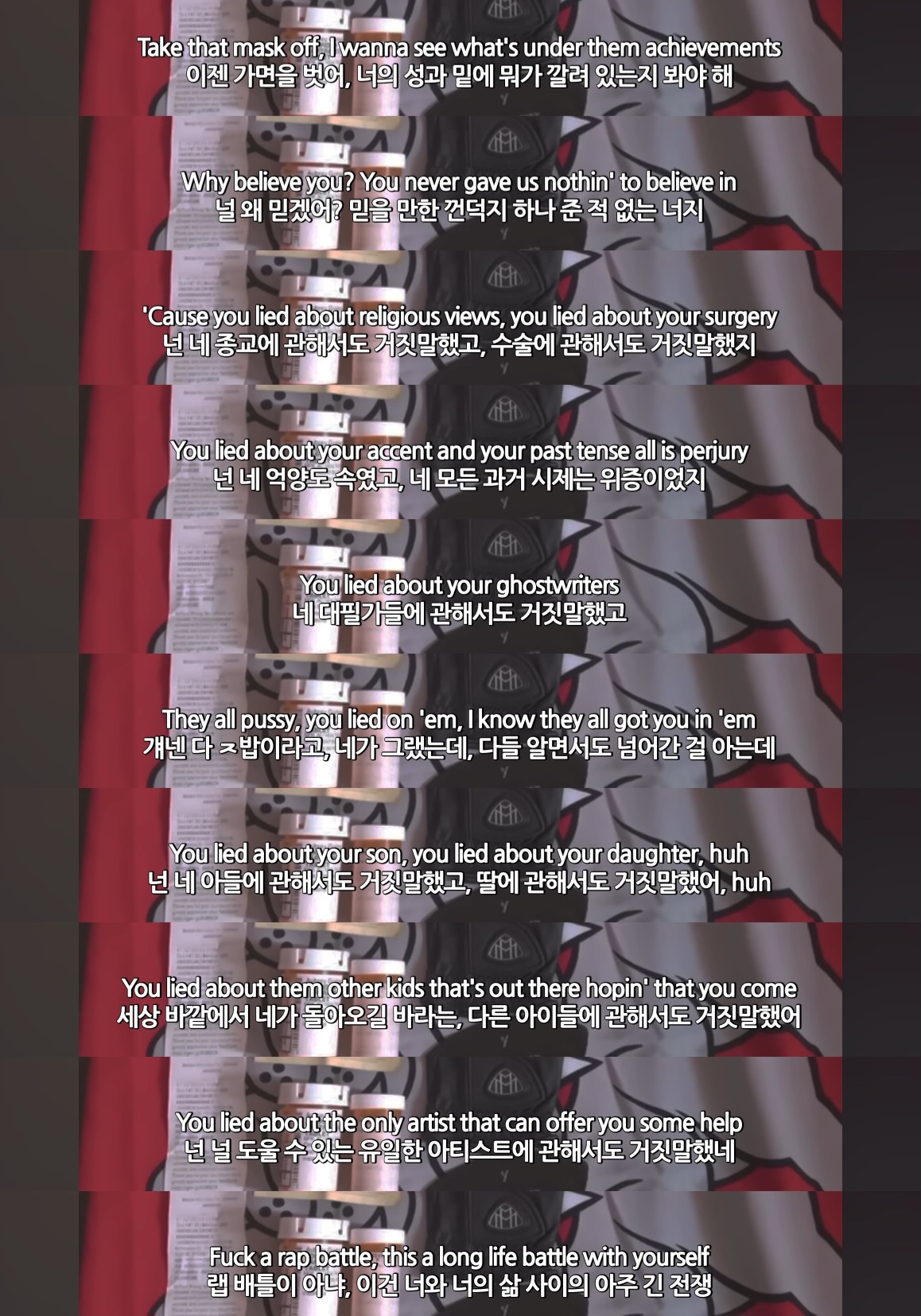드레이크가 진짜 소아성애자고 성범죄자인지 숨겨놓은 딸이 있는지, 켄드릭이 사기꾼에 가정폭력범인지 밝혀진 부분 없음