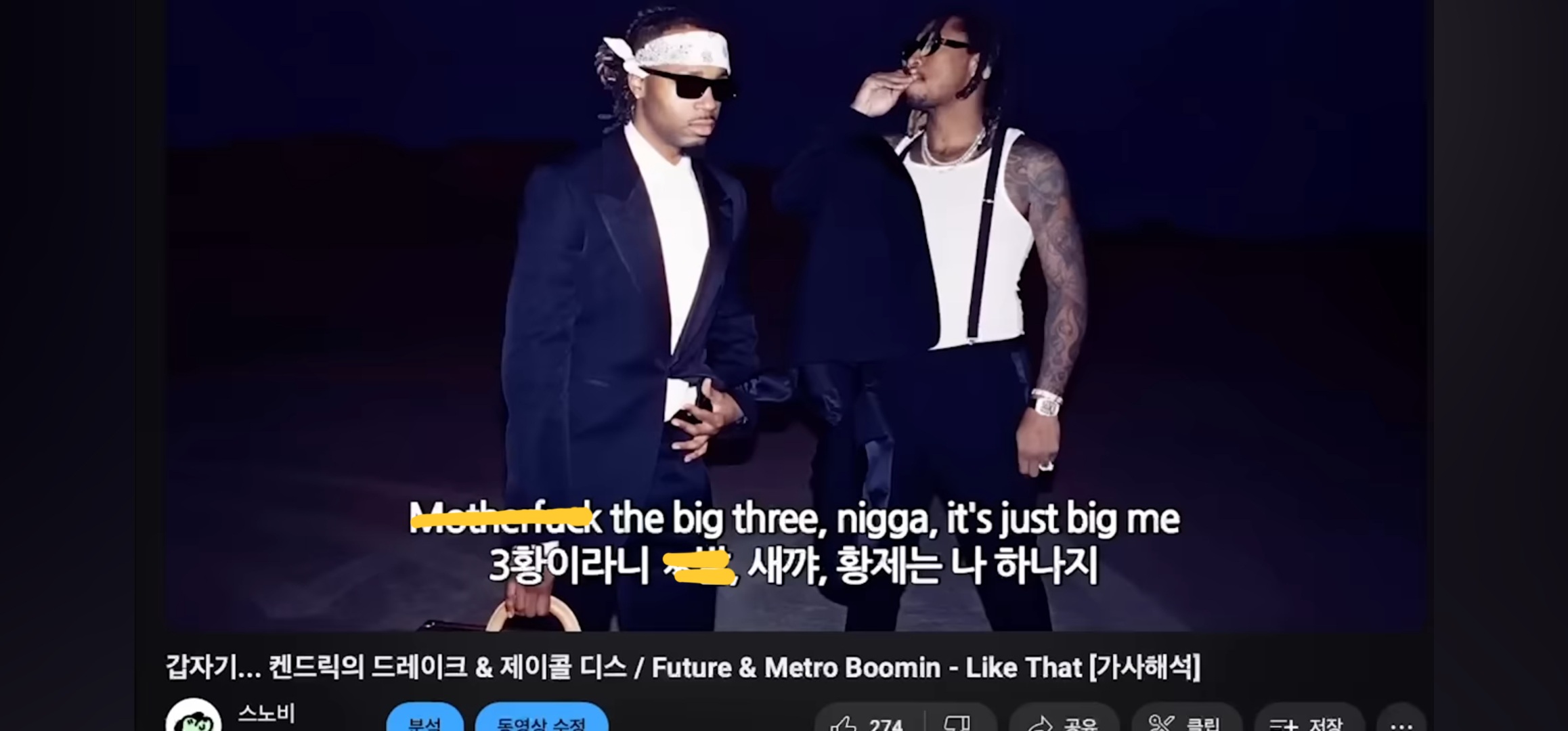 문제시 not like us 3단 그라데이션 리액션 영상 찍음
