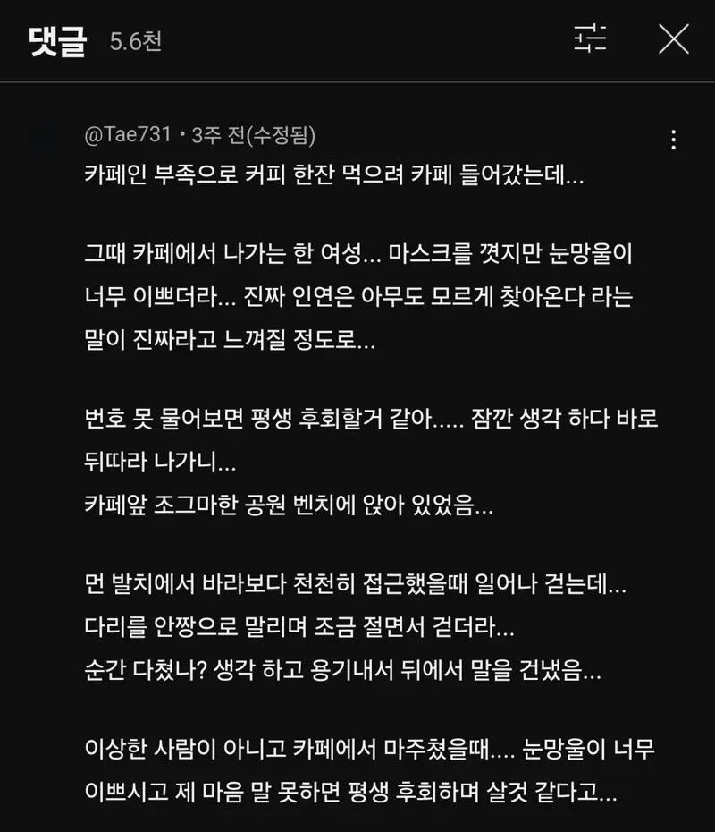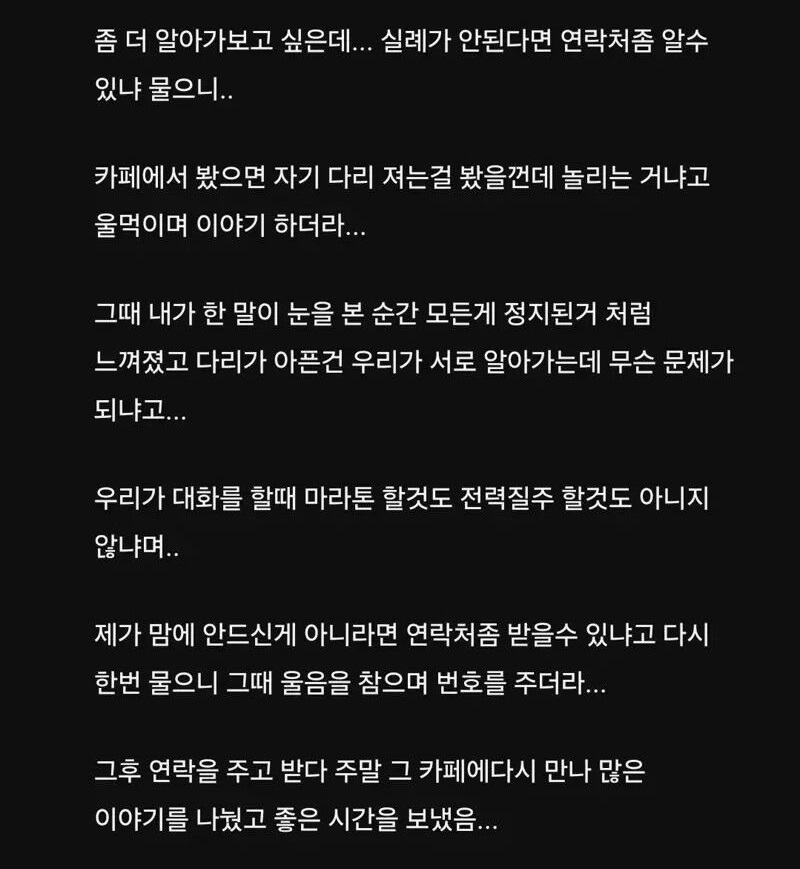 [기타]카페에서 눈맑은 여자 번호 딴 썰.ssul 작성자카이지|작성시간24.05.23|조회수124,239 목록 댓글 211 글자크기 작게가 글자크기 크게가 출처: https://twitter.com/museun_happen/status/1793493899887128805?t=ognPf02fxLC3OFk971hgjg&s=19 다음검색 현재 게시글 추가 기능 열기 북마크 공유하기 신고 센터로 신고 댓글 댓글 211 댓글쓰기 답글쓰기 댓글 리스트 작성자나는핑크햄 | 작성시간 24.05.29 눈물난다 작성자삼성물산 | 작성시간 24.05.29 눈물 ㅠㅠㅠㅠ 작성자미래재벌 | 작성시간 24.06.01 말도 참 예쁘게 한다... 이런게 진짜 사랑이지.... 작성자따뜻한라떼 | 작성시간 24.06.02 인류애 충전…ㅠ 작성자허니카모마일 | 작성시간 26.02.02 진짜 사랑이다 댓글 전체보기