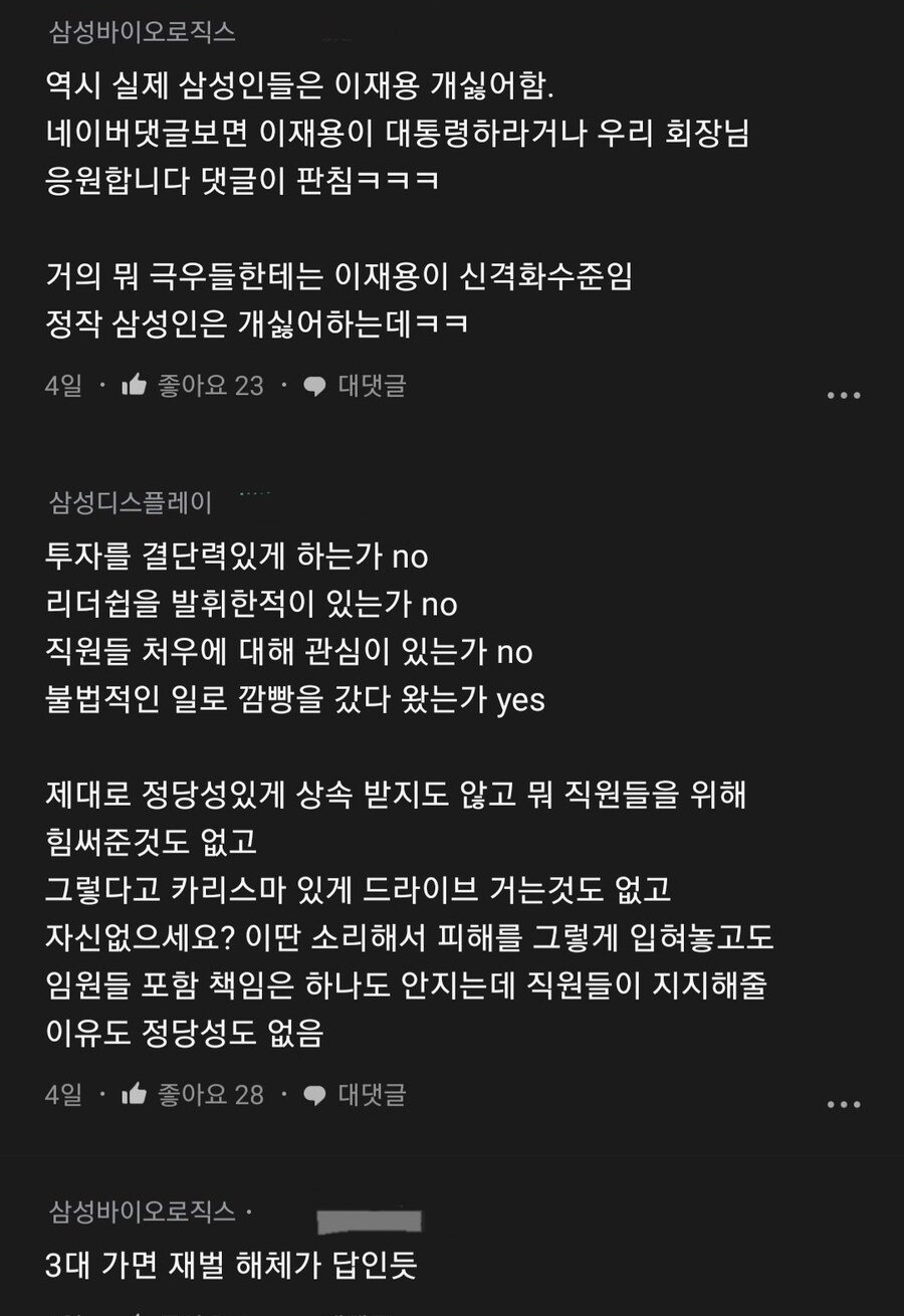 우리나라 진짜 이상한것 같음… 왜이렇세 재벌 찬양하는 사람들이 많을가