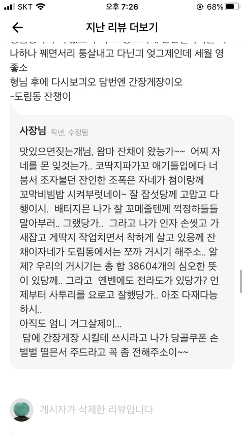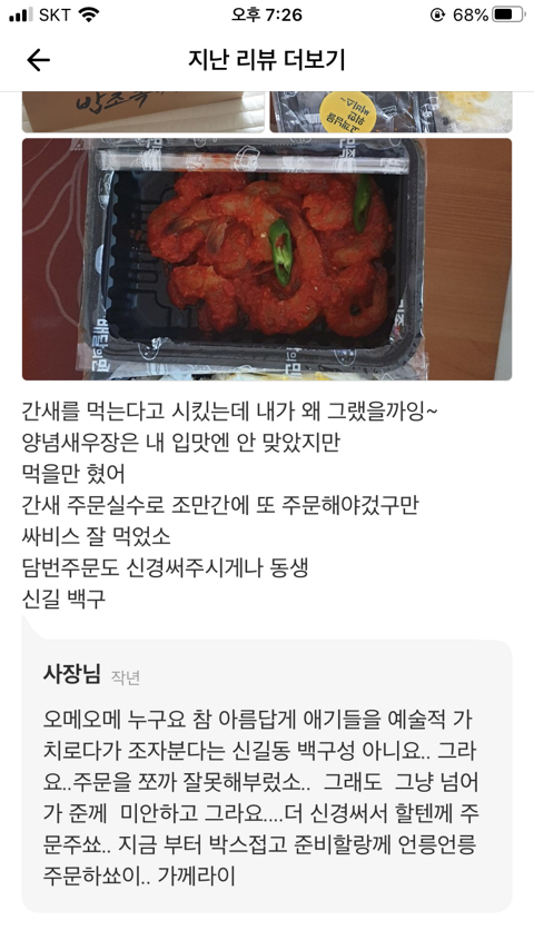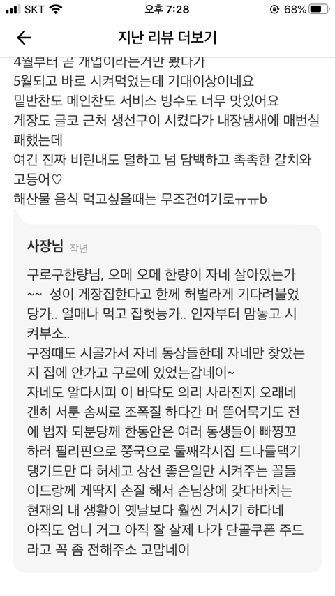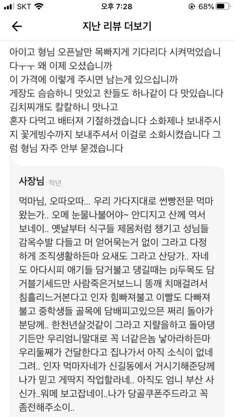 근데시방 사장이 리뷰로 소설을 쓰네 존나웃겨