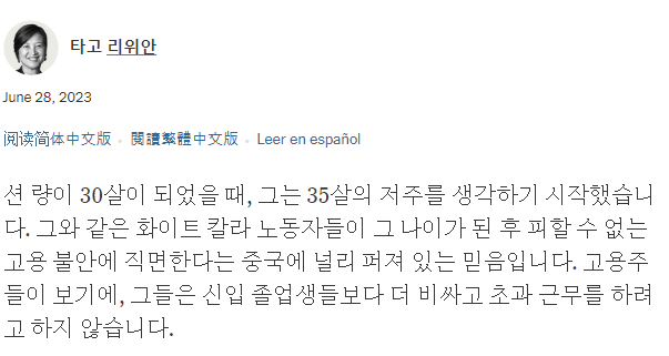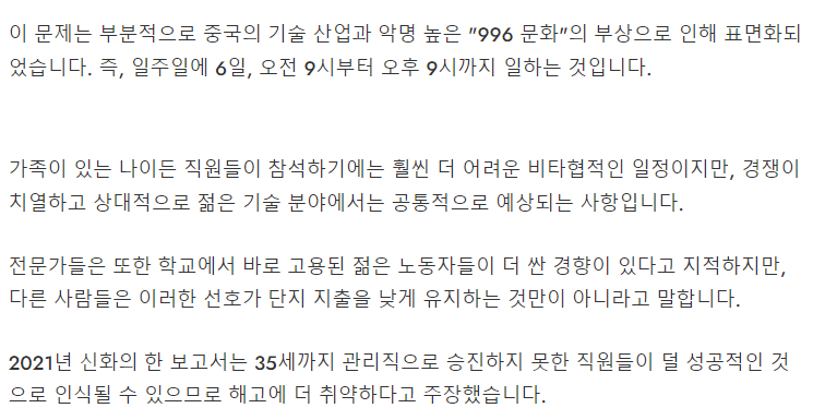 이들은 엄청난 저가로 35세의 저주에 두려워 하면서 996에도 불평하지 못하고 일한다.