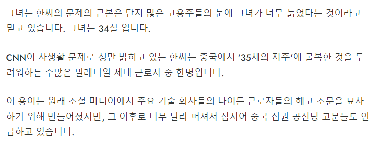 중국에서는 35세의 저주라는 말이 공공연하게 떠돈다.