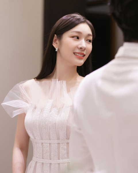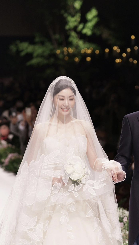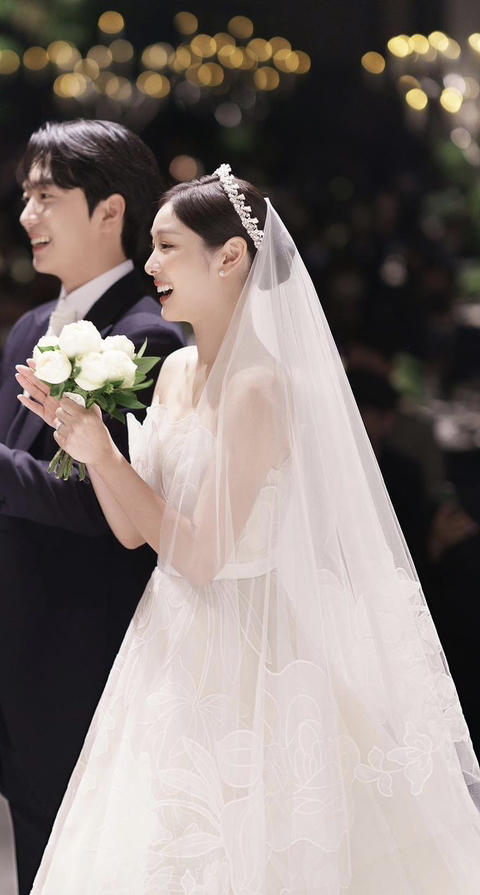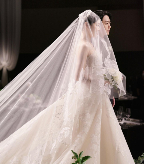 비즈X 노출X 20년 뒤에 봐도 촌스럽지 않을 깔끔한 웨딩드레스 + 긴 베일 + 적당히 화려한 티아라