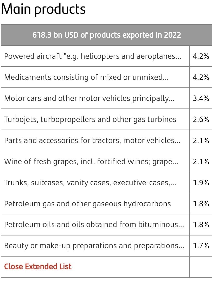 [ 프랑스 TOP 10 수출 품목들 ]