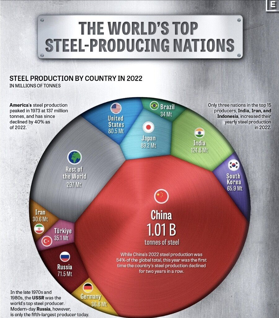 [ 중국 철강생산량: 세계 54%, 10억 1000만톤 ]