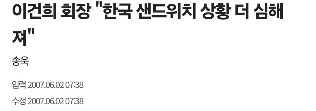 샌드위치론은 삼성 전 회장인 이건희가 2007년에 중국은 가격 경쟁력과 품질 향상으로 한국을 쫓아오며 격차를 좁히는 반면, 일본은 더 막대한 기술투자를 통한 기술 우위로 한국의 추격을 뿌리치며 격차를 벌려나가니 한국이 저부가가치든 고부가가치든 먹거리를 찾을수 없게 된다는 위기의식에서 나온 말임.