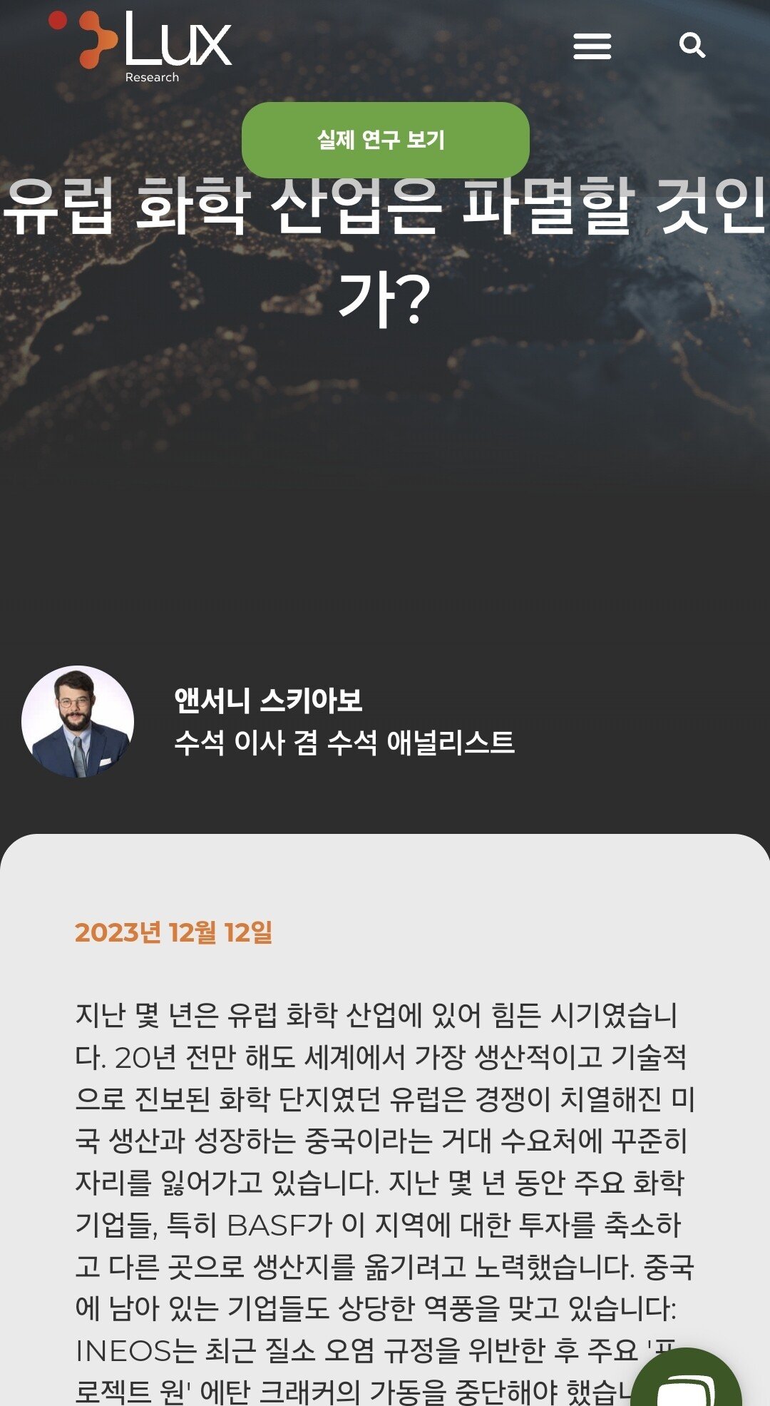 사실 유럽의 양대 산업은 자동차 산업과 석유 화학산업이고 그나마 남는게 금융과 제약산업이였으나 금융과 제약산업은 미국에게 내줬음.