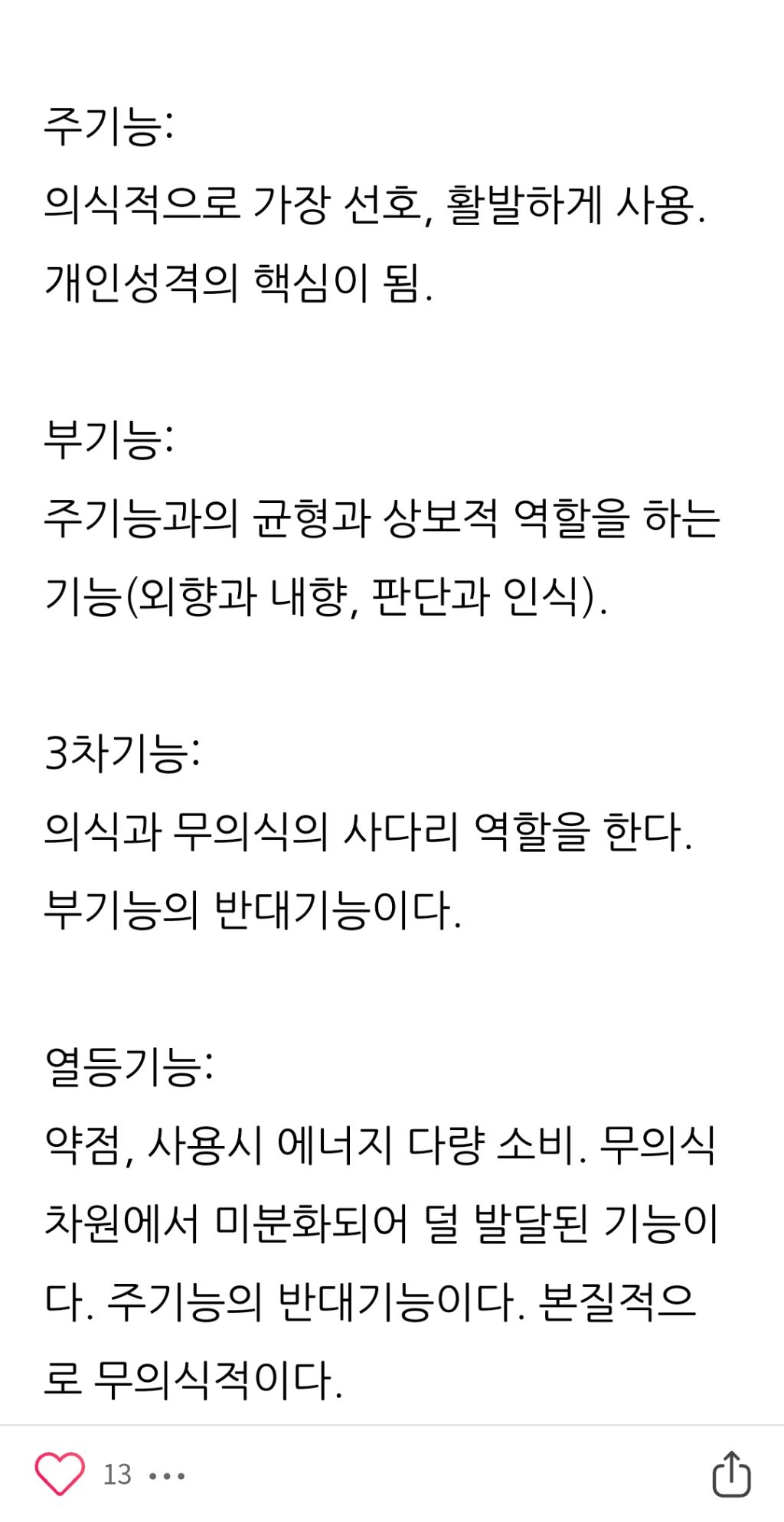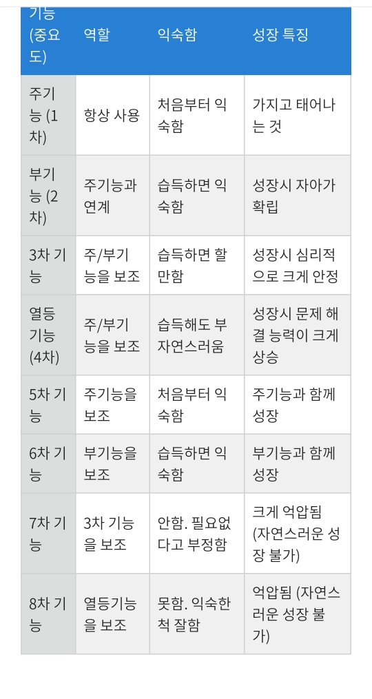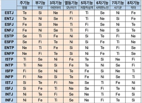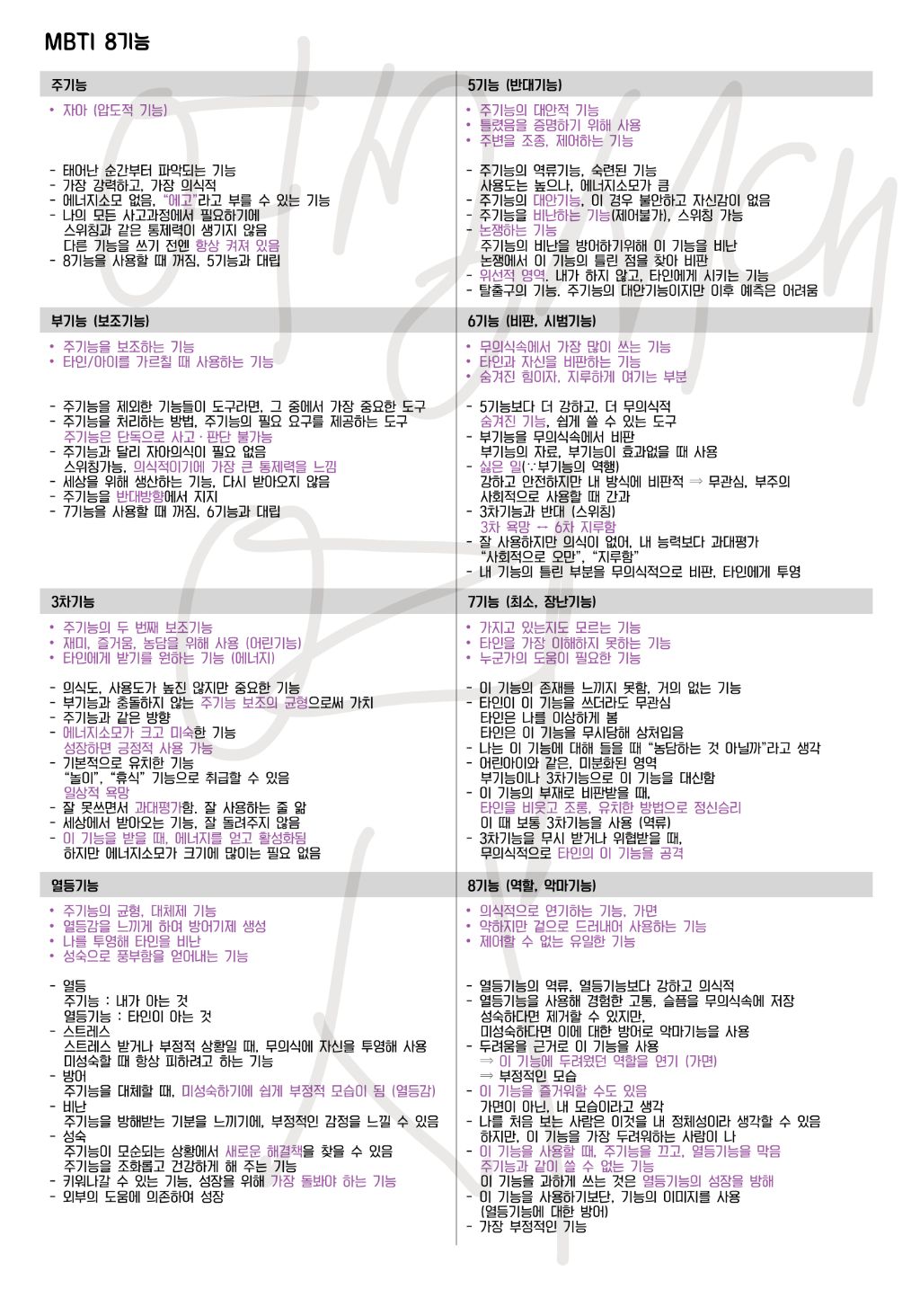 이 기능들을 얼마나 골고루,편식하지 않고 잘 유용하고 수련하는지도 정말정말 정말 중요한데(편중되면 최악의경우 나르시스트 ,소시오패스 등처럼 보일수있음)