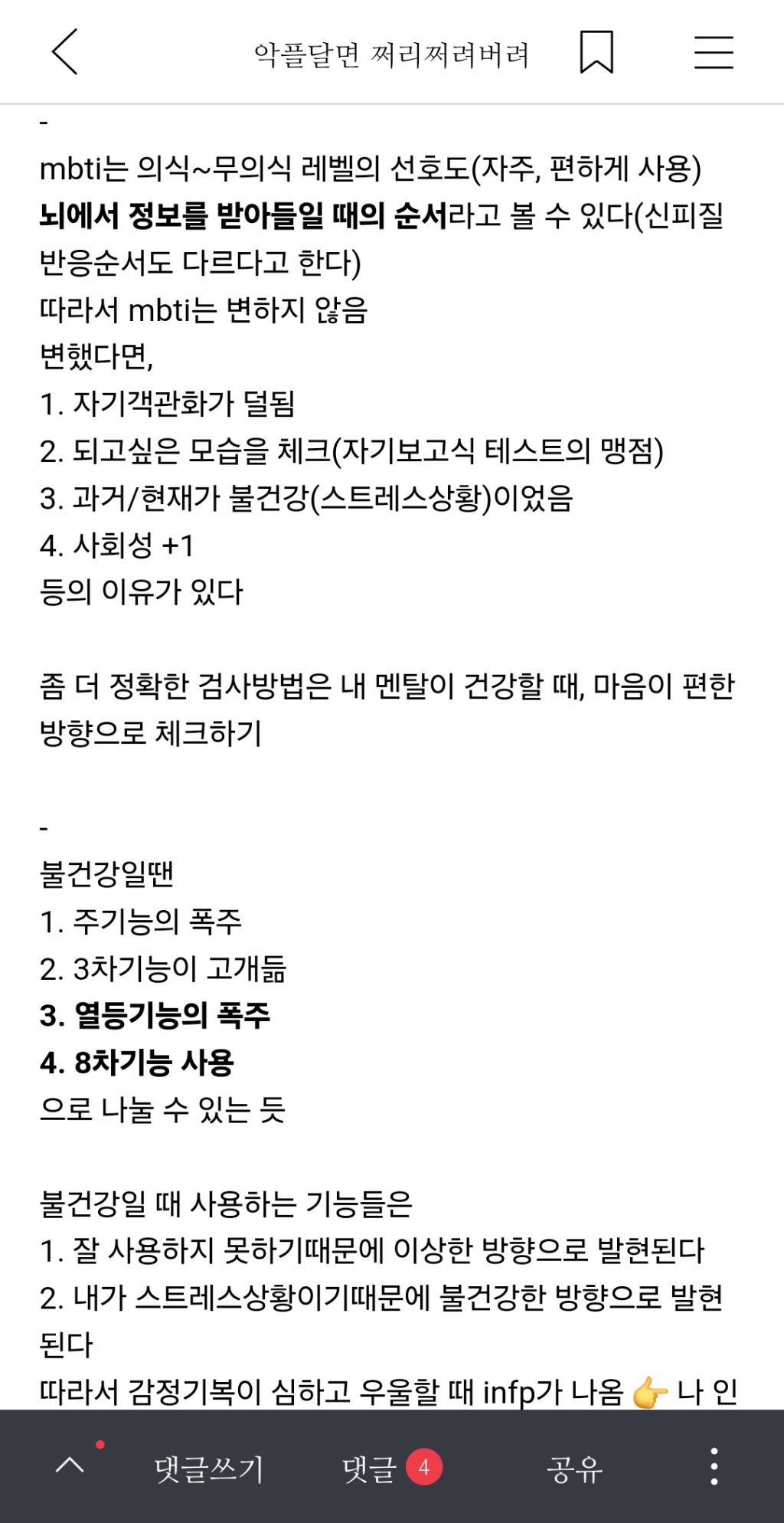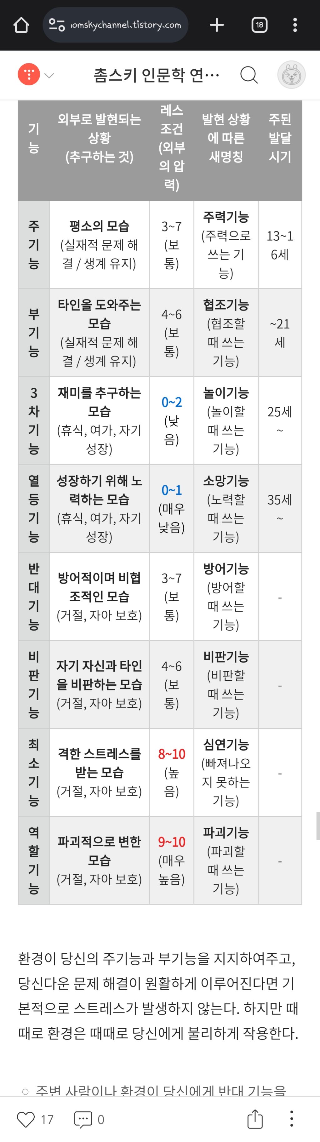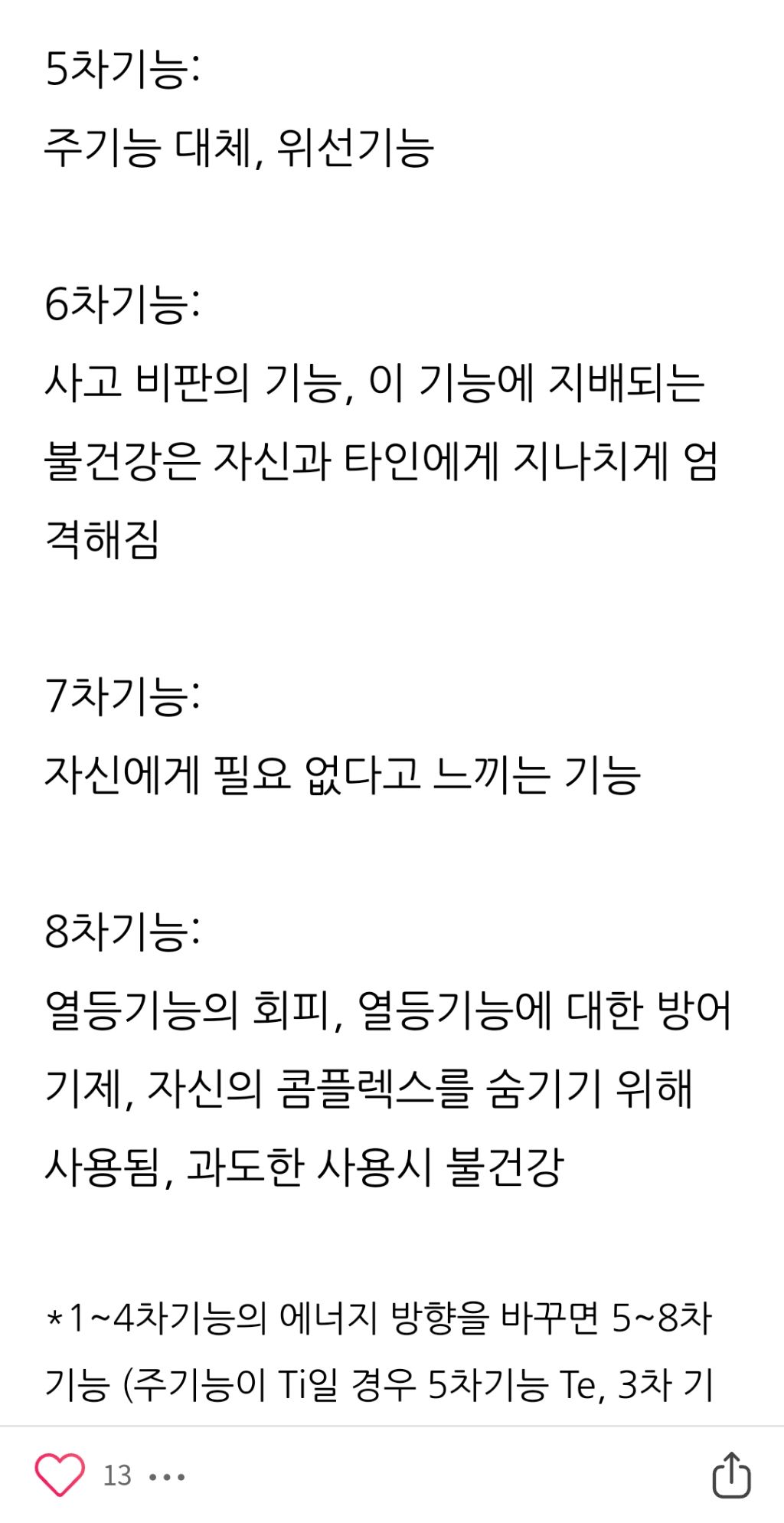 이 기능들을 얼마나 골고루,편식하지 않고 잘 유용하고 수련하는지도 정말정말 정말 중요한데(편중되면 최악의경우 나르시스트 ,소시오패스 등처럼 보일수있음)