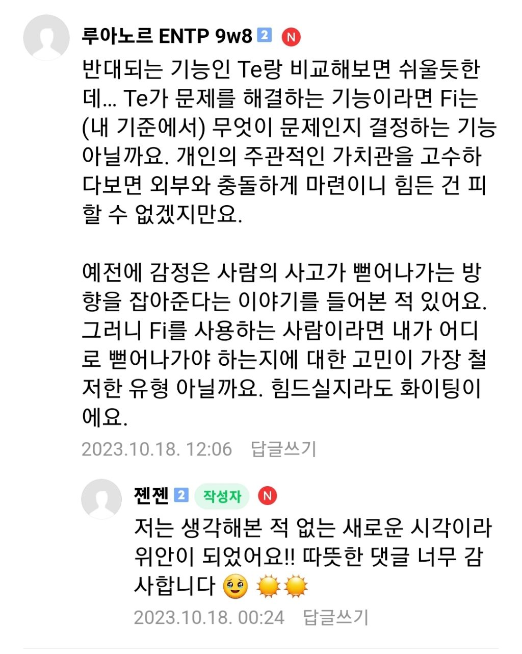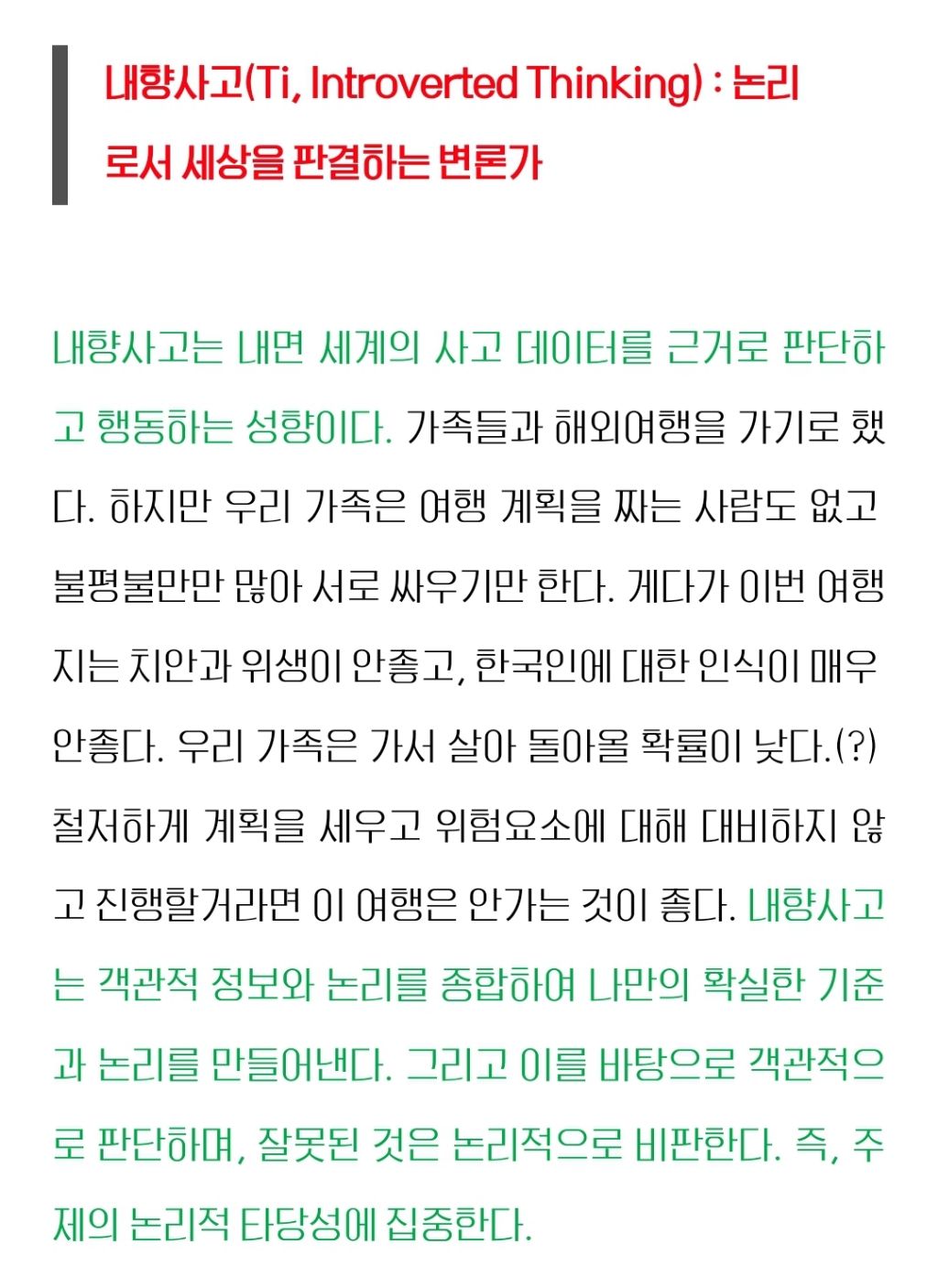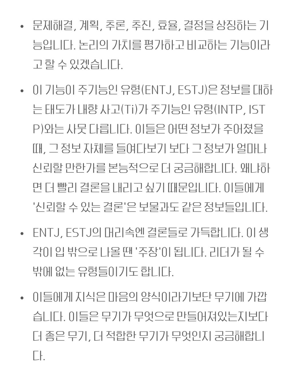 예를 들어 intj인 난 타인할때 조언할때 2차 기능인 te를 써서 계획이나 방법을 말하곤 했어