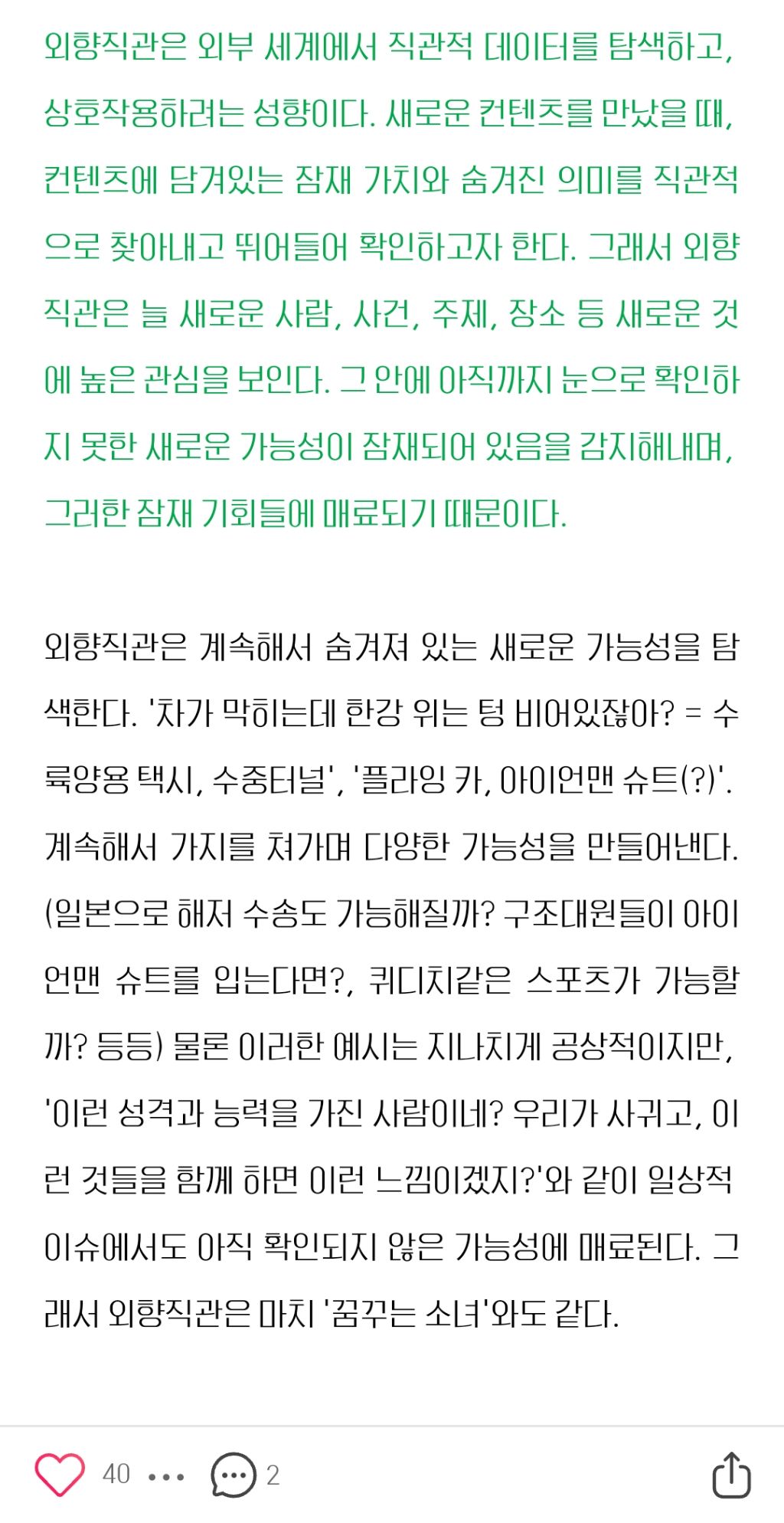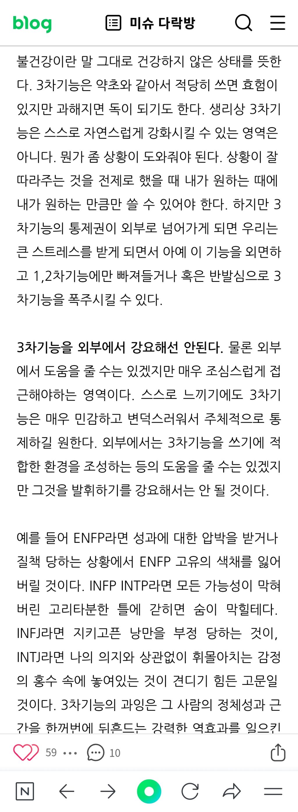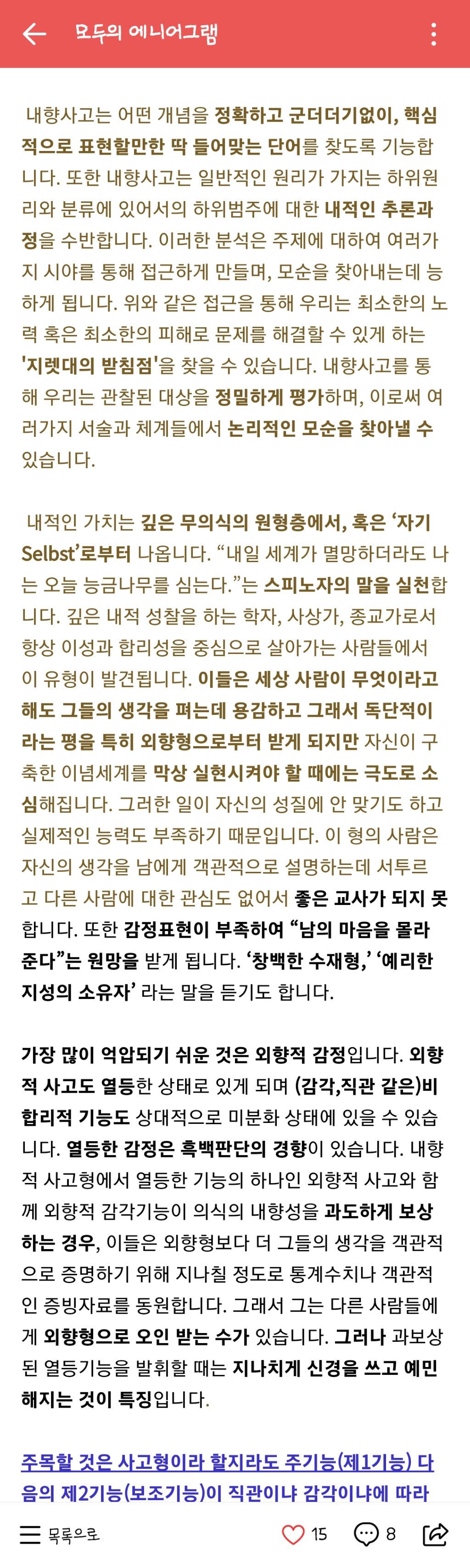 예를 들어 intj인 난 타인할때 조언할때 2차 기능인 te를 써서 계획이나 방법을 말하곤 했어