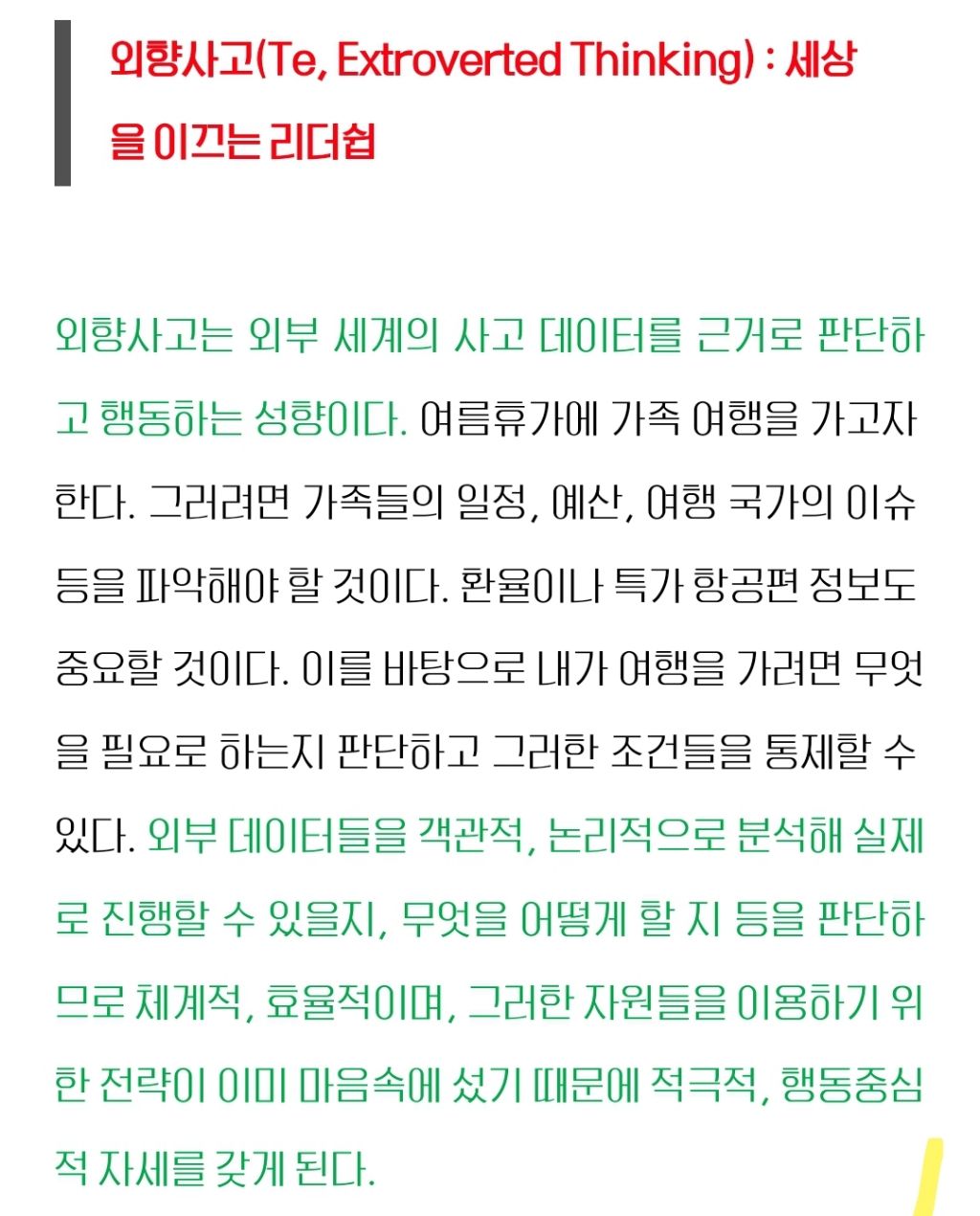 그리고 etj들의 주기능인 te를 부러워하는 사람들도 있는데 te만 극대화되면 좋지 않아