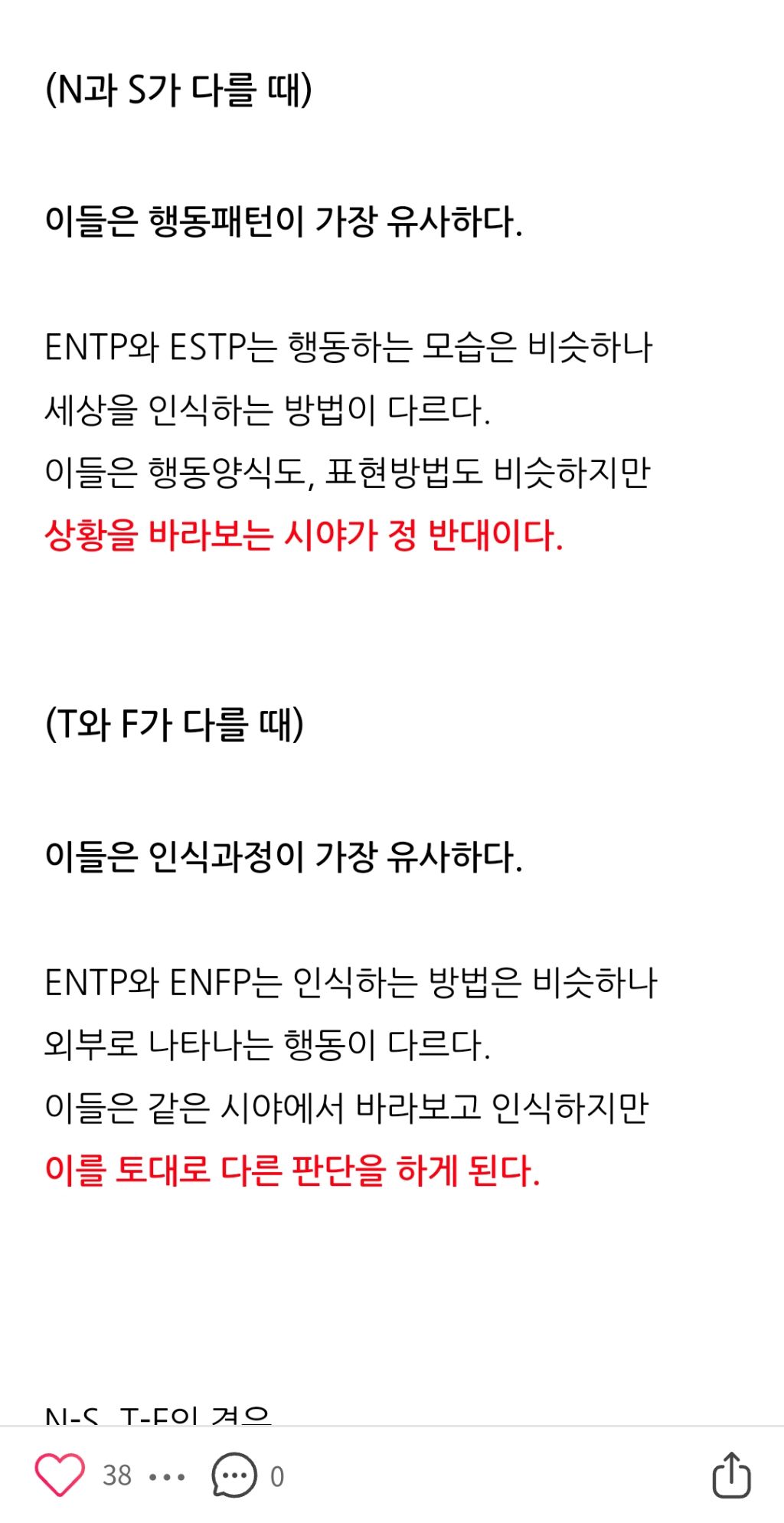 서로를 부정적으로 생각했었는데 8기능을 알고나서