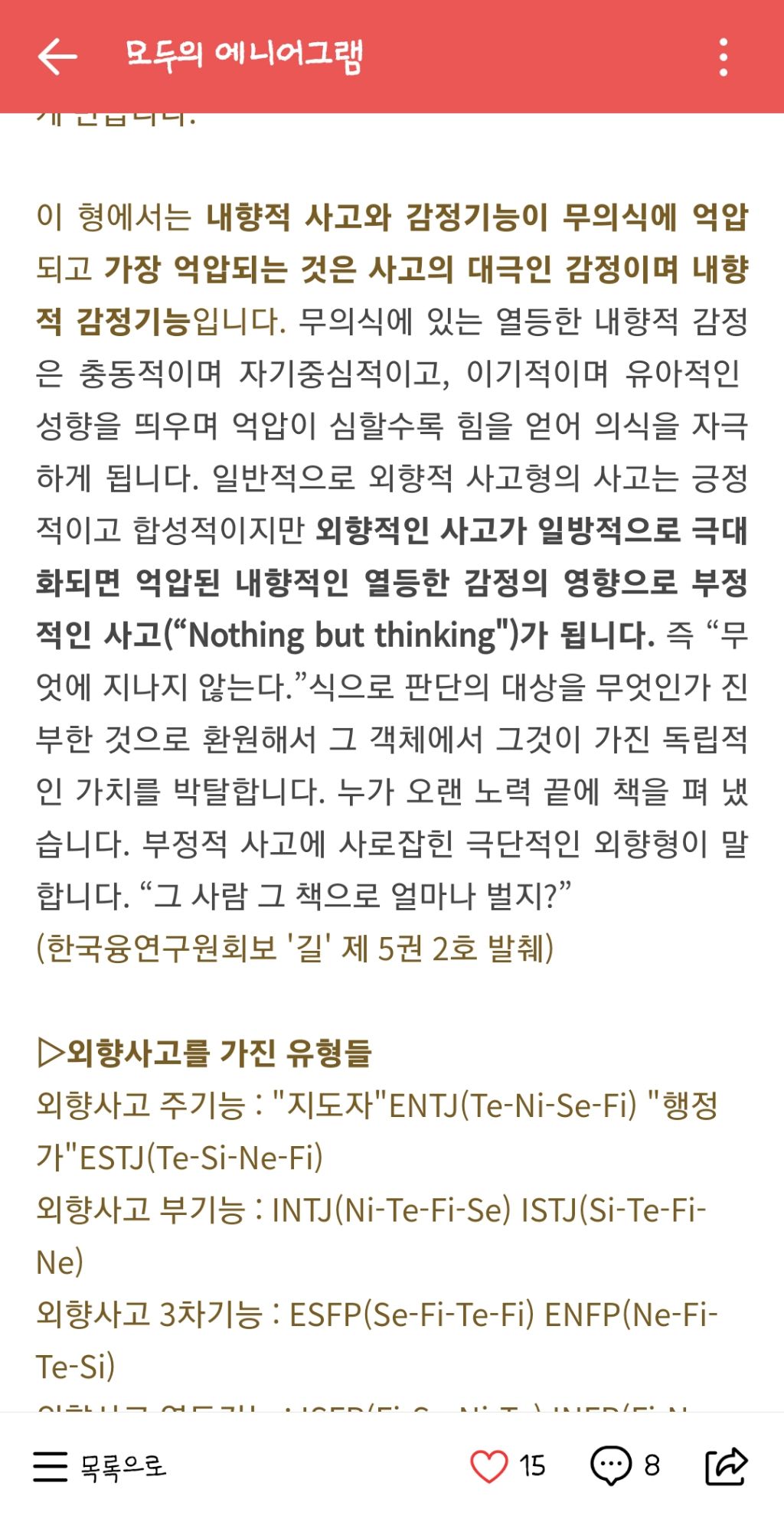 즉슨 8기능을 알고 아빠를 이해할수있게 되었다는 말이야