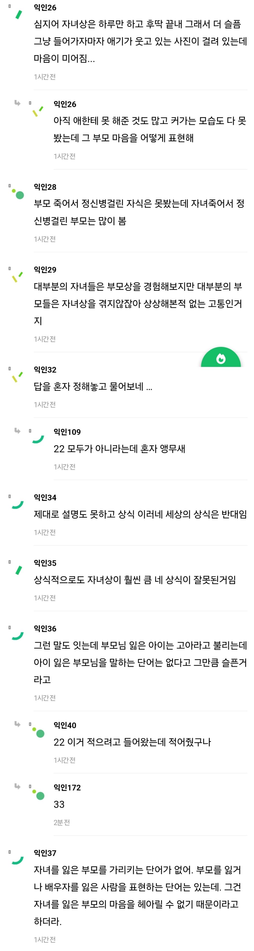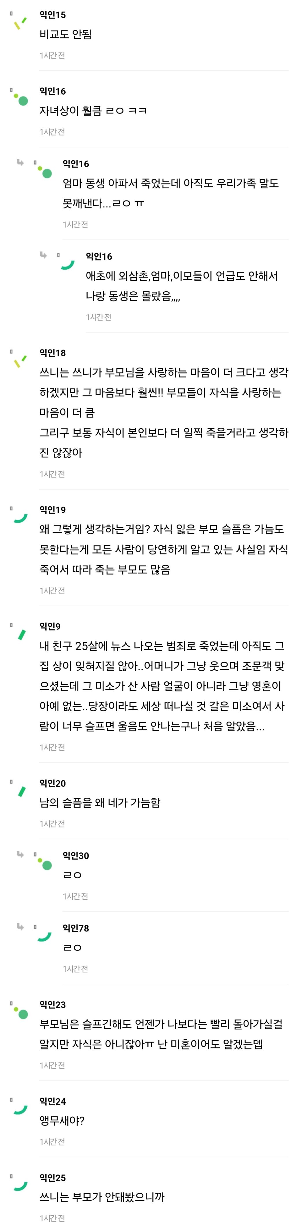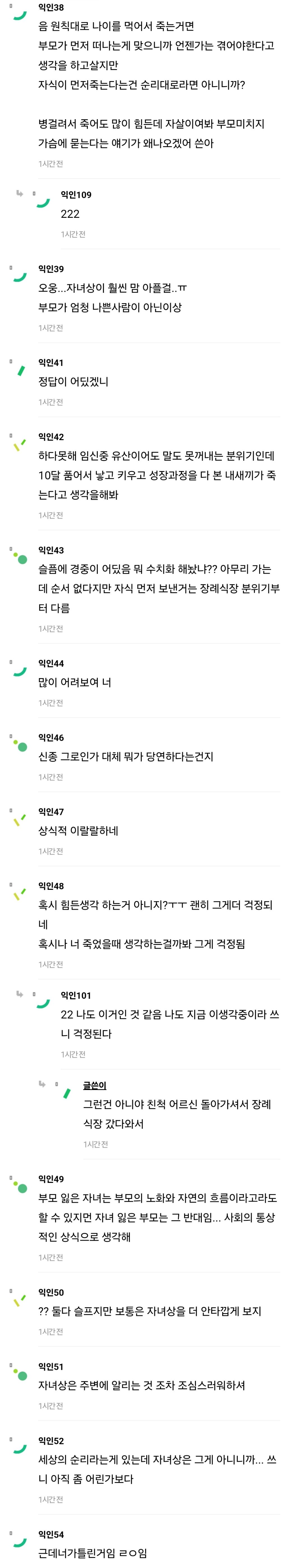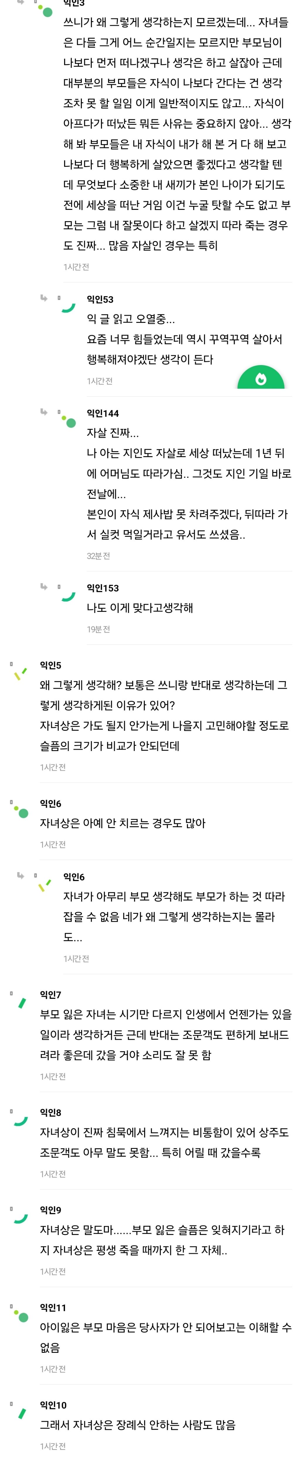 작성자우룽밀크티 작성시간 24.05.30 슬픔에 경중이 어딨어222 부모든 자녀든.. 갑작스런 사고나 자살, 타살, 급작스러운 병사 같은 청천벽력같은 죽음에는 모두가 처절하지