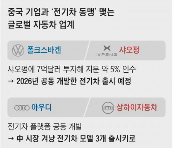 " 글로벌 자동차 기업의 태도가 달라진 것은 중국차와 협력이 아닌 정면 대결을 벌일 경우 출혈 경쟁으로 이어질 수밖에 없다는 현실적인 문제 때문이다. 가격 경쟁에선 승산이 없으니 아예 협업으로 중국차 장점을 흡수한 뒤 장기전에 대비하려는 기업들이 나타나는 것이다. "