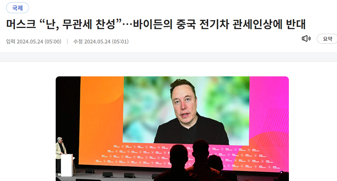 머스크는 지난 1월 실적 발표 후 콘퍼런스콜에서 한 애널리스트가 중국 자동차업체들의 서구 시장 진출에 대해 질문하자 “그들은 어떤 종류의 관세나 무역 장벽이 세워지느냐에 따라 중국 밖에서 상당한 성공을 거둘 수 있을 것”이라며 “솔직히 나는 무역 장벽이 세워지지 않는다면 그들(중국)이 전 세계 대부분의 다른 자동차 회사들을 거의 무너뜨릴 것이라고 생각한다”고 말했습니다.