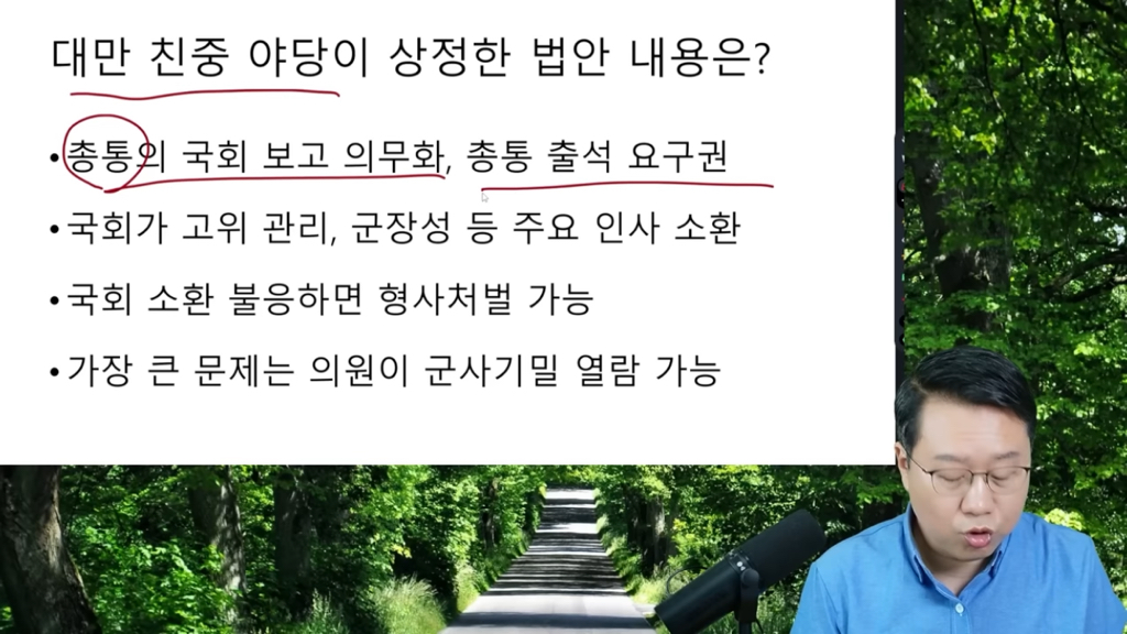 야당에서 총통권한 축소하는 법안을 상정함