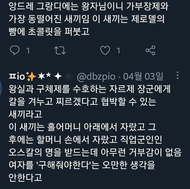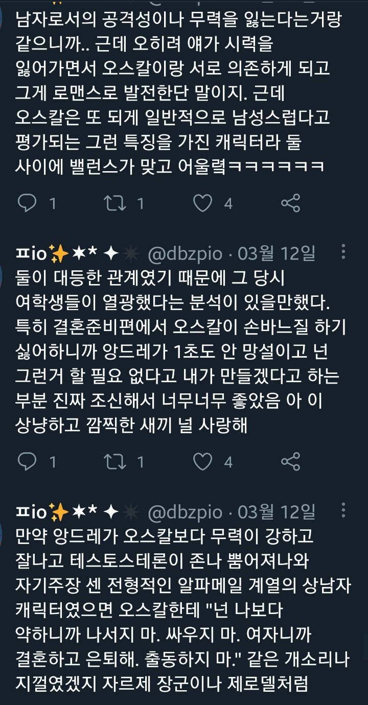 앓다죽을 오스칼 앙드레ㅠㅠㅠㅠㅠㅠ 넘 재밌고 멋지다....