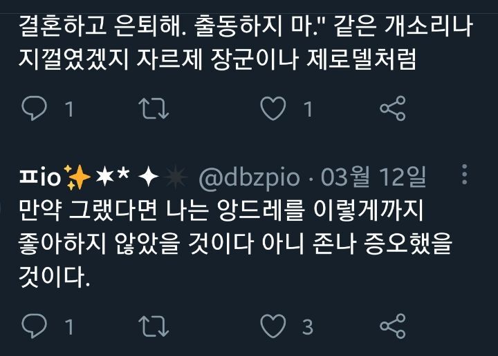작성자고슴도치의 고소 작성시간 24.06.03 앙드레은 찌질남 폭력남이라서 싫어힝 ㅠ