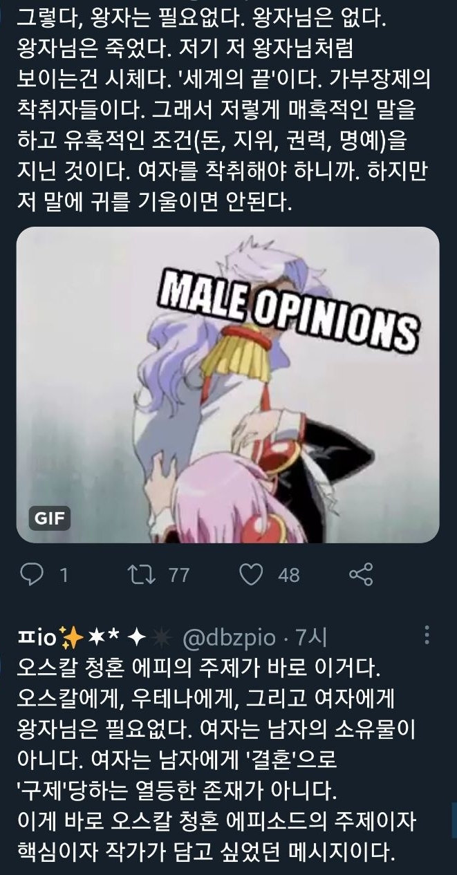 [스크랩] [흥미돋]베르사유의 장미에서 오스칼은 왜 평민인 앙드레를 선택했을까?.twt (왕자는 필요없다)